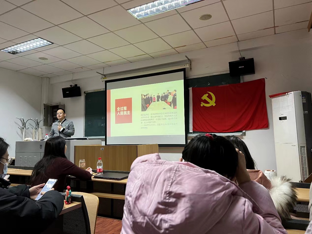 张文超老师围绕党的十九届六中全会精神和习近平总书记在庆祝中国共产党成立100周年大会上的重要讲话精神,从理论、历史、实践三个逻辑层次,深入阐述了中国共产党坚持人民至上思想的发展脉络和重大成就。他表示,坚持人民至上是马克思主义世界观方法论的本质体现,是中国共产党不断从胜利走向胜利的根本所在,是贯彻新时代中国特色社会主义总体布局和战略布局的中心思想。他结合典型案例,重点讲解了“21世纪的马克思主义”“全体人民共同富裕”“新发展理念”“全过程人民民主”等关键概念的主要内涵以及学习中容易出现的认识误区。他表示,一个国家选择什么样的国家制度和发展思想,是由这个国家的历史文化、社会实践所决定的。