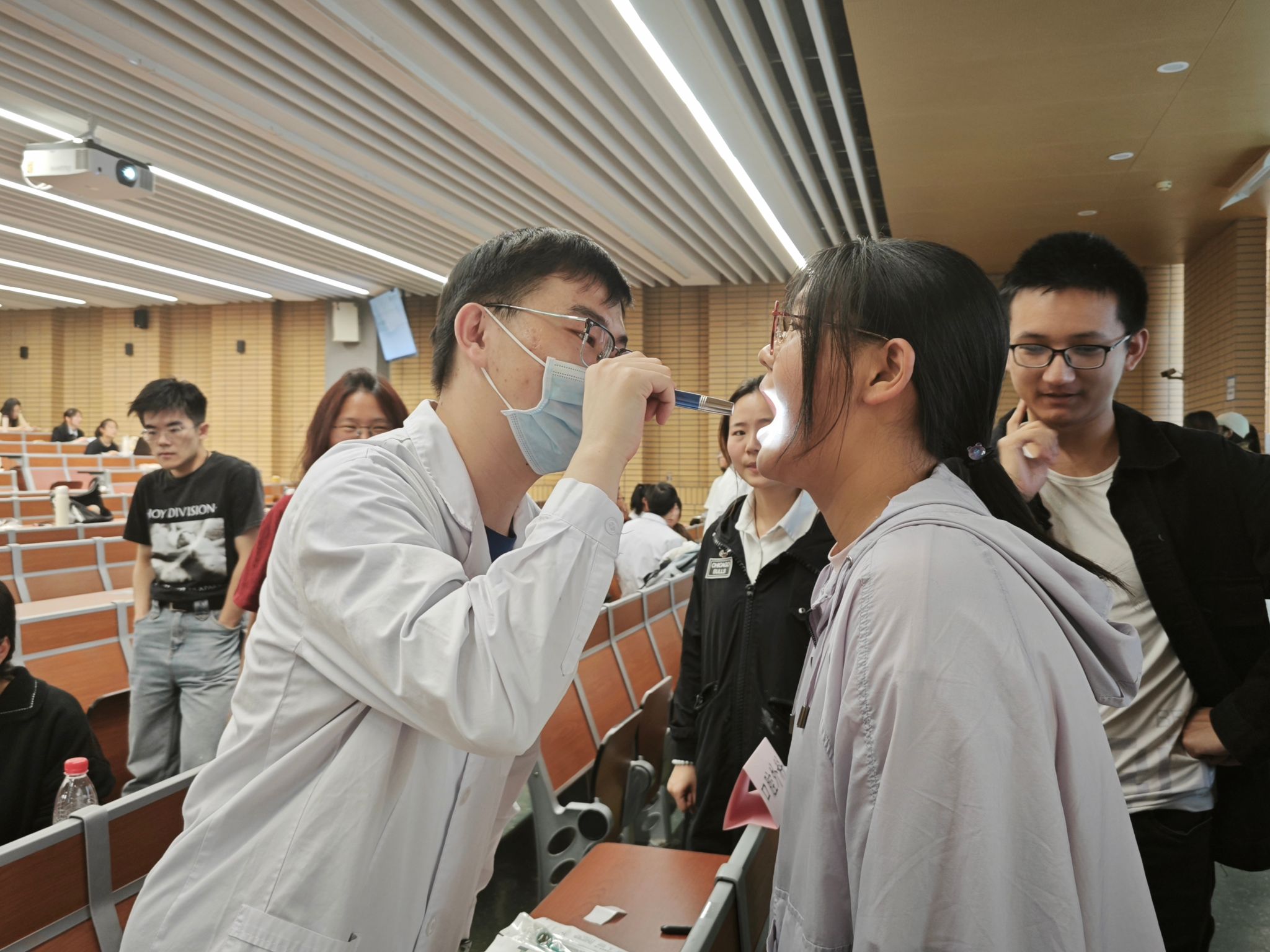 讲座结束后,北大口腔学子接受了同学们的自由提问,并为在场同学提供了一对一义诊。义诊内容包括口腔正畸、口腔内科及口腔修复。同学们根据自身需要选择不同门类排队依次就诊,北大口腔学子耐心答疑解惑,提出有针对性的专业建议。现场气氛热烈,“医”“患”双方沟通愉快。