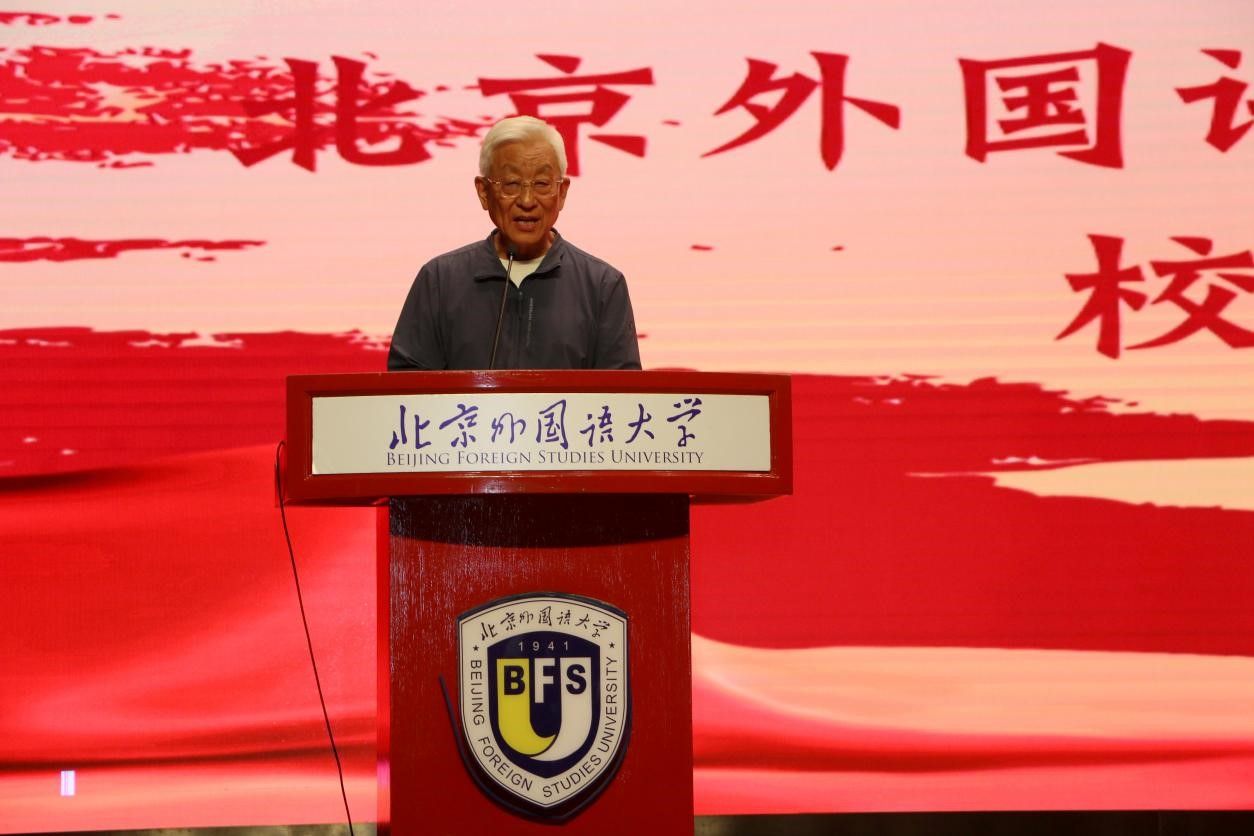 北京外国语大学原党委书记、现校友会会长杨学义作为特邀嘉宾讲话。他以幽默风趣的语言,强调北外英院人的强项就是凭借强大的英语基本功,在正式场合恰当合理地讲好中国故事。他讲述了YABO鸭脖老前辈的故事,鼓励同学们把握好学业、坚守好底线、照顾好身体,如此才能为国家和社会做出贡献。