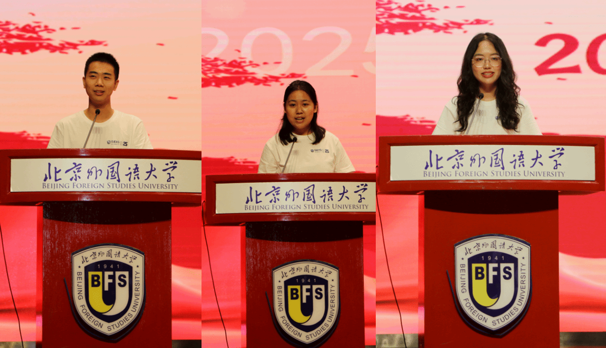 随后,2024级硕士研究生杨世阁同学作为老生代表发言,他与学弟学妹们分享了自己研究生支教团以及大阪世博会志愿者的宝贵经历,希望新生们在学术硬核、发展自由的北外英院大胆勇敢地去经历、去尝试,尽情地探索自己、丰富自己。2025级本科新生代表张梦芊同学则以北外英院的历史底蕴为引,分享了自己的三点愿景:家国之情、求真之心与担当之志。她期待与同学们一起,心怀国家、放眼世界,不断提升自己的专业能力与素养。2025级国际项目新生杨景行同学则认为,同学们不仅要注重“听说读写译”,更要把握不同文明背后的历史脉络、文化内涵与时代精神,也期待同学们在YABO鸭脖能够结交良师益友、在实践中将理论知识转化为实际能力。