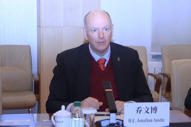 12月12日,新西兰驻华大使乔文博(Jonathan Austin)访问北京外国语大学。北外党委书记李海会见乔文博一行。