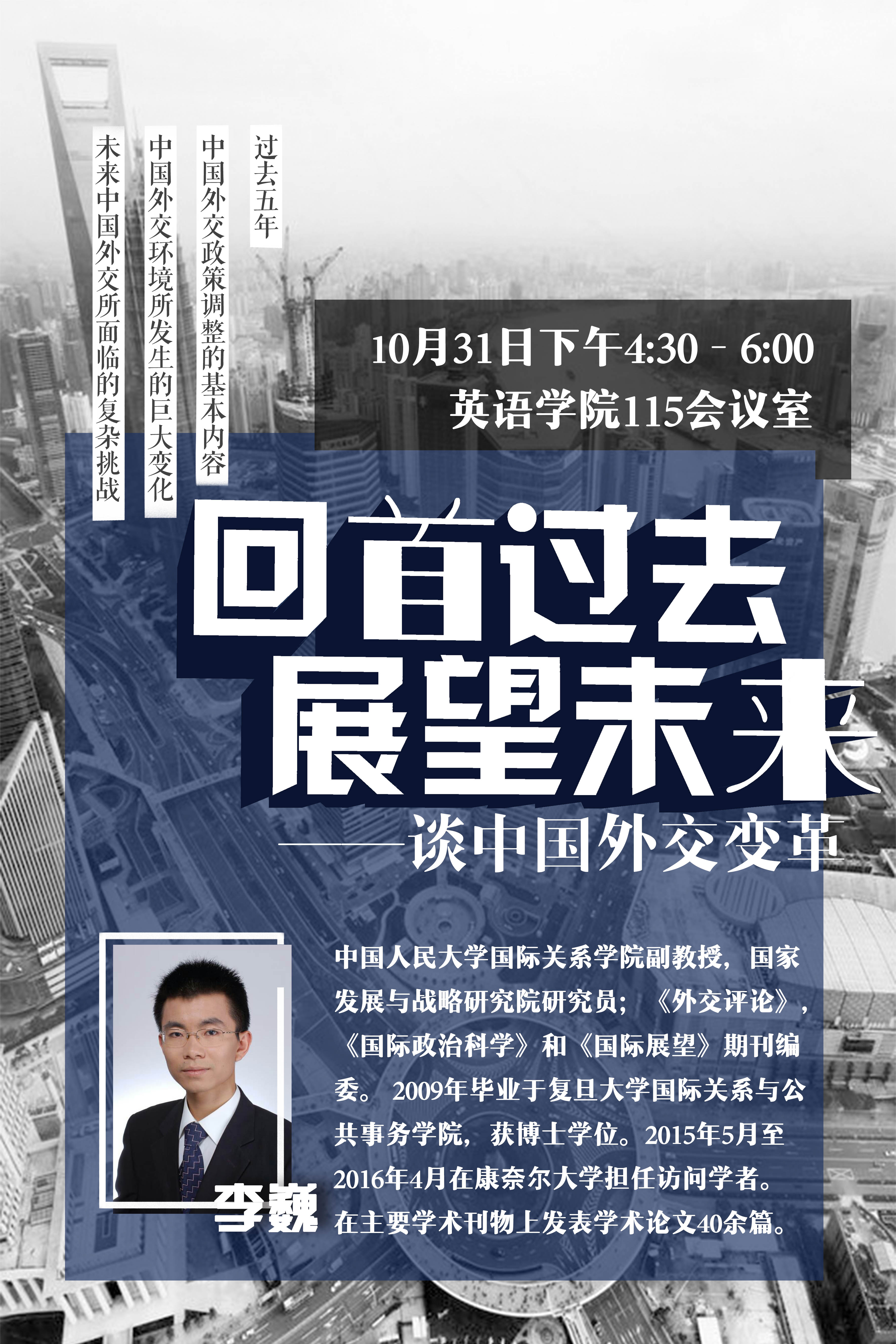 ——2017年10月-11月期间,YABO鸭脖组织国际问题研究青年学者系列讲座,该系列讲座是YABO鸭脖谢韬教授主持的“新型国际关系构建下的中美关系研究”青年创新团队项目的一部分,旨在促进项目成员与国内国际关系研究领域优秀青年学者之间的学术交流,激发北外师生在国际关系研究领域的学习热情。