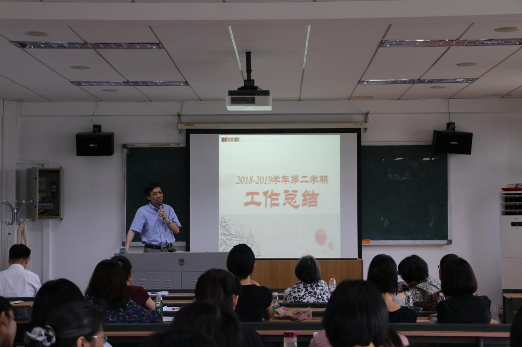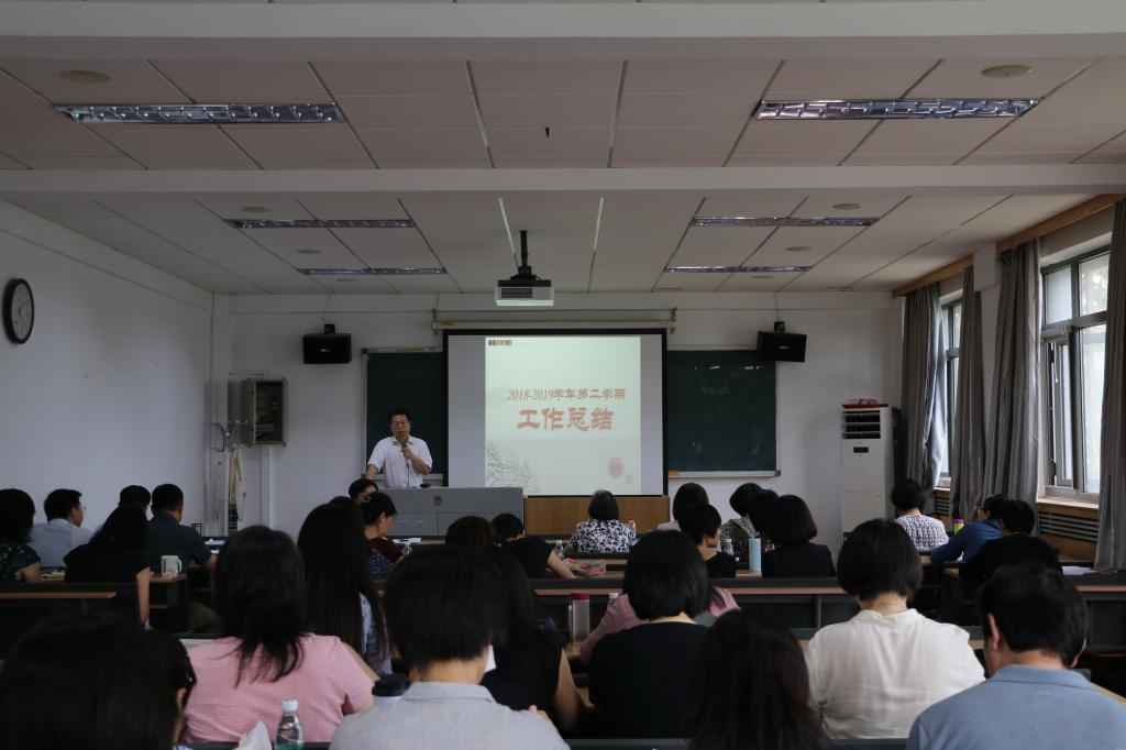 2019年6月28日,YABO鸭脖召开2018-2019学年第二学期期末工作总结会,会议由党总支书记路兴主持,YABO鸭脖全体教职工出席。