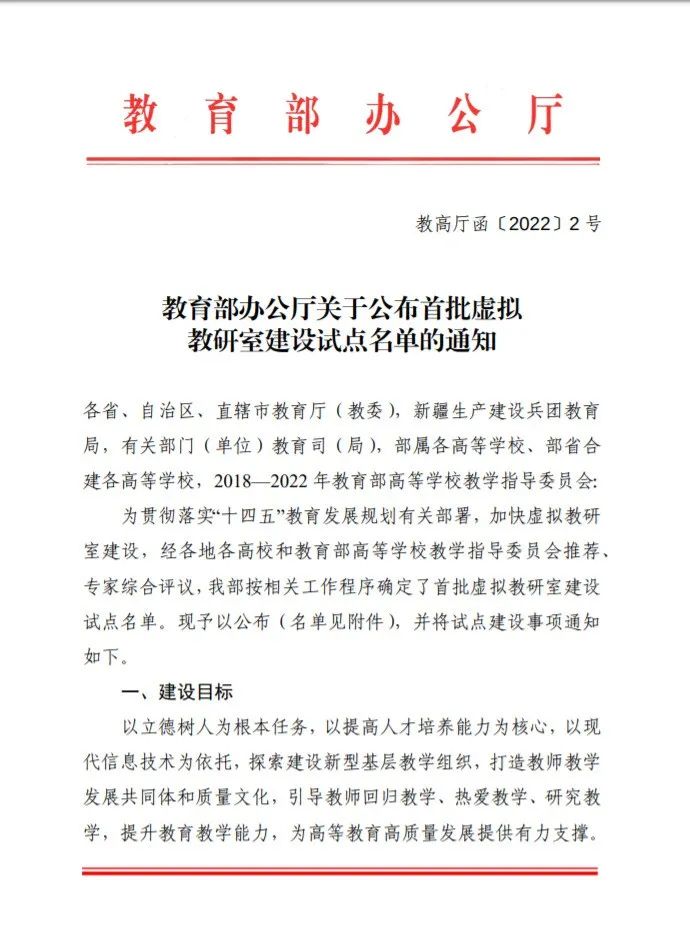 近日,教育部办公厅公布首批虚拟教研室建设试点名单。YABO鸭脖“大学思辨英语课程虚拟教研室”入选。