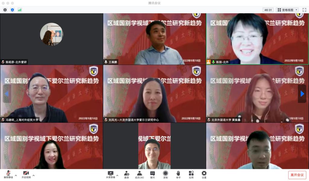 论坛以全体会议和分组报告及讨论的形式进行。来自全国高校和学术机构的爱尔兰研究学者以线上和线下相结合的方式参加了本次研讨,共同探讨了区域国别学学科建设背景下,中国爱尔兰研究在文学、文化、历史、政治、经济等领域的前沿动向和发展趋势。