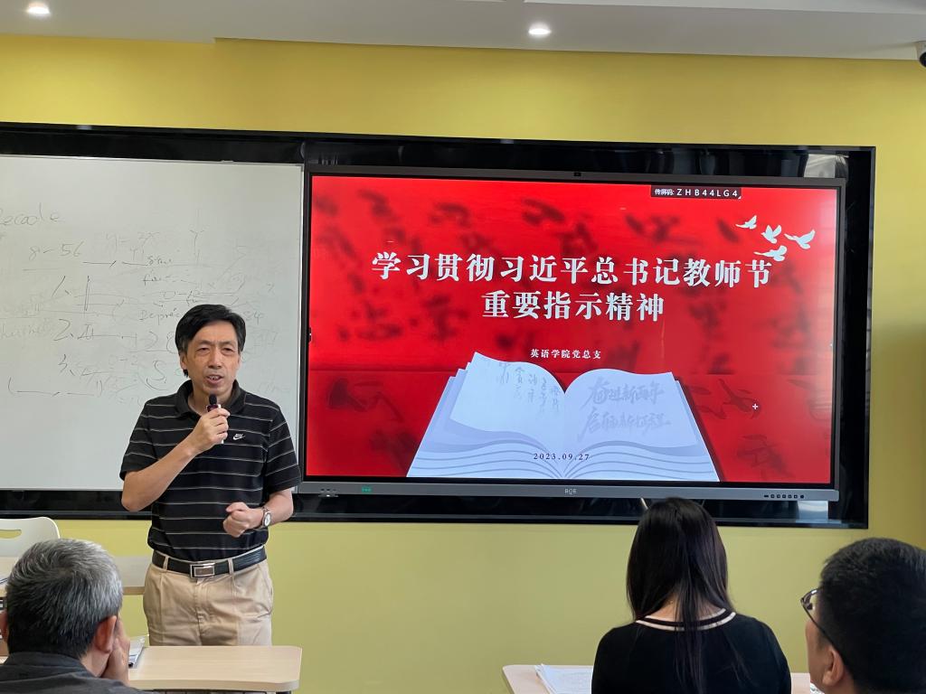 院长张剑表示,全院教师应当认真学习领会习近平总书记教师节重要指示精神,将其贯彻到日常工作中,在教学实践、学术科研、管理服务等各个方面,为学生成长发展创造更加良好的空间。他还就近期正在进行的学科评估工作提出要求,敦促全院上下要深入了解学科评估的相关政策要求,认真迎接这次“大考”,以此为契机,推动学院学科建设再上一个新的台阶。