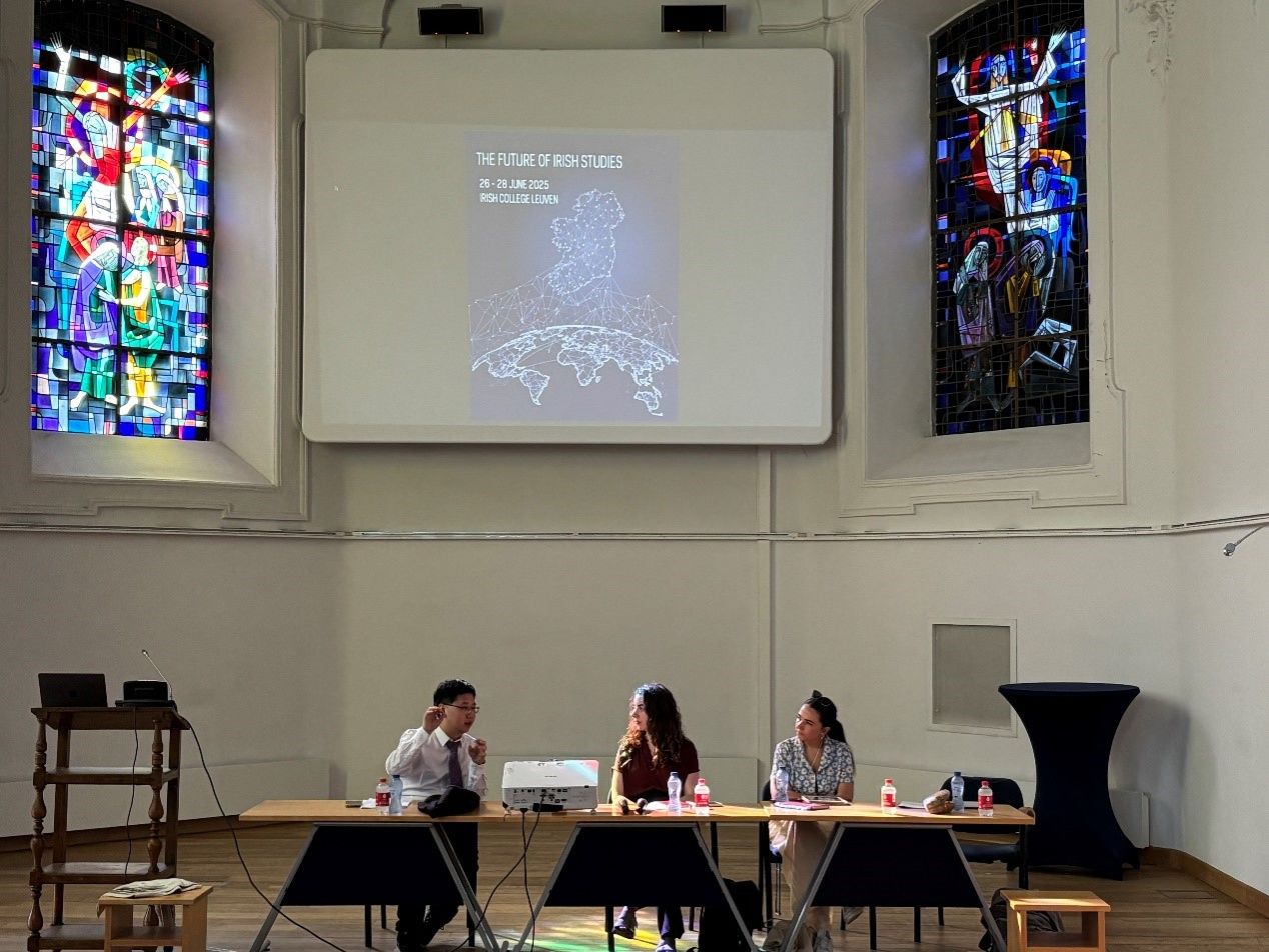 2025年6月26日至30日,YABO鸭脖爱尔兰研究中心主任陈丽教授及博士生刘玉坤参加了在比利时鲁汶大学举办的“爱尔兰研究的未来”国际学术研讨会。该会由美国圣母大学基奥-诺顿爱尔兰研究所与鲁汶大学的爱尔兰研究中心共同主办,集聚全球主要的爱尔兰研究领域的代表,共同探讨多重挑战下爱尔兰学科的未来发展情况。来自北京外国语大学、圣母大学、鲁汶大学、剑桥大学、都柏林大学、波士顿学院、纽约大学、贝尔法斯特女王大学、约克大学、圣保罗大学、贾瓦哈拉尔·尼赫鲁大学等的百余位在爱尔兰研究领域颇有建树的全球高等院校与机构的专家学者、师生代表齐聚鲁汶大学爱尔兰学院(Irish College Leuven)。会议探讨了爱尔兰研究的新方向、爱尔兰研究的跨/多学科性、爱尔兰研究学者与机构的全球影响力、爱尔兰研究在当下面临的多重挑战与机遇、如何加强学术机构之间的资源互补和交流合作、创建一个真正跨学科的爱尔兰研究的全球联盟的可行性等当今爱尔兰研究领域中亟待关注与处理的关键议题,致力于让爱尔兰研究成为一门更具韧性、更包容且更全面的学科。