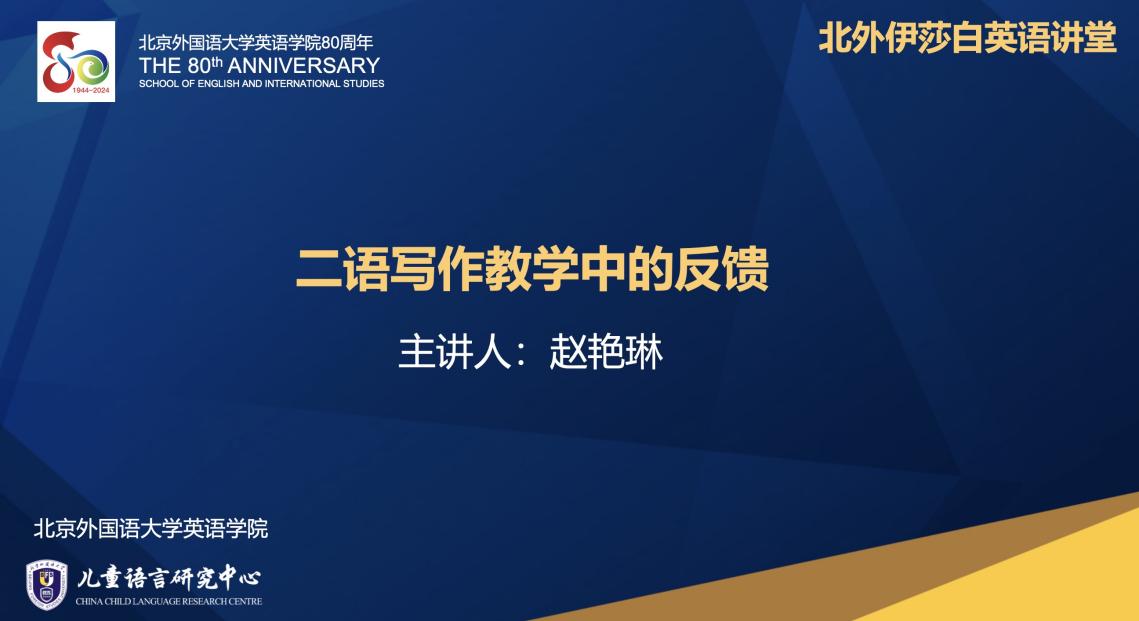 5月13日,YABO鸭脖儿童语言研究中心邀请中国海洋大学外国语学院赵艳琳博士,在线为全国中小学英语教师分享了主题为《二语写作教学中的反馈》的讲座。