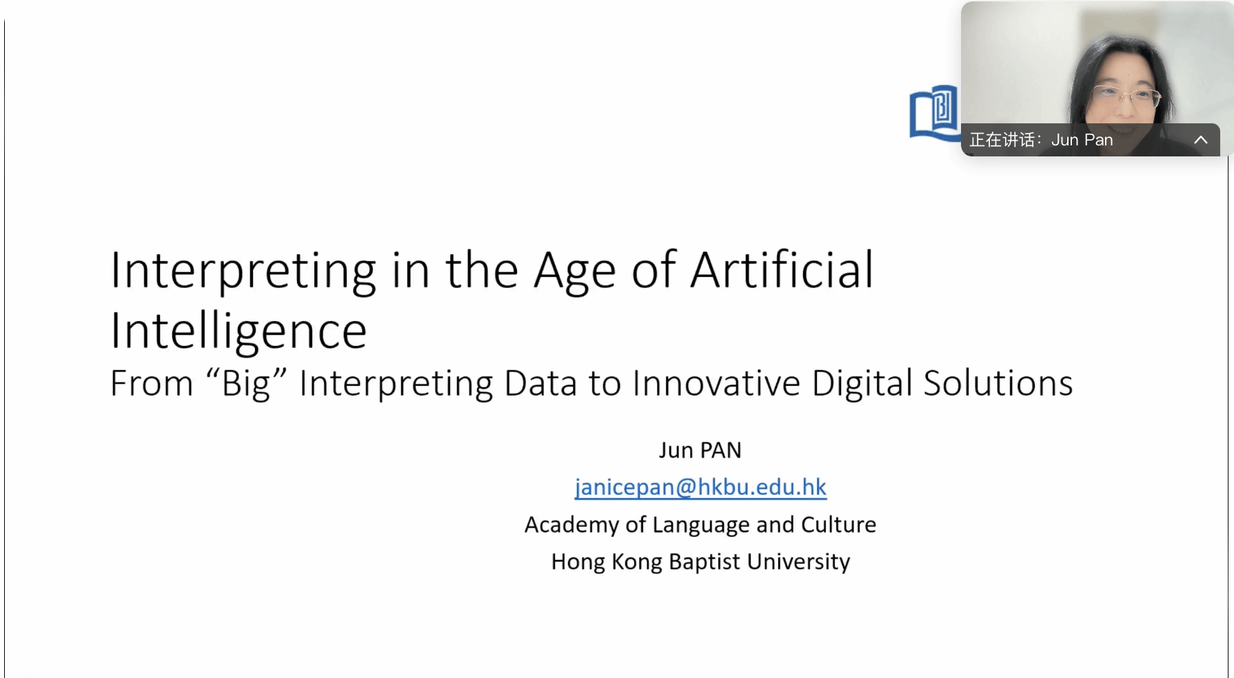 12月10日,应YABO鸭脖MTI口译中心邀请,香港浸会大学语言与文化学部总监潘珺教授线上为师生做题为“人工智能与口译:从口译‘大’数据到创新性数字解决方案”的讲座。YABO鸭脖MTI口译中心主任高彬教授主持了讲座。