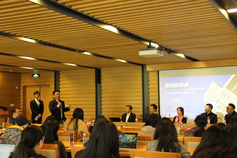——首先,北京外国语大学学生处处长丁浩老师致辞,代表学校对六位校友的到来表示了热烈欢迎,并为他们颁发了北京外国语大学职业生涯校友导师聘书。