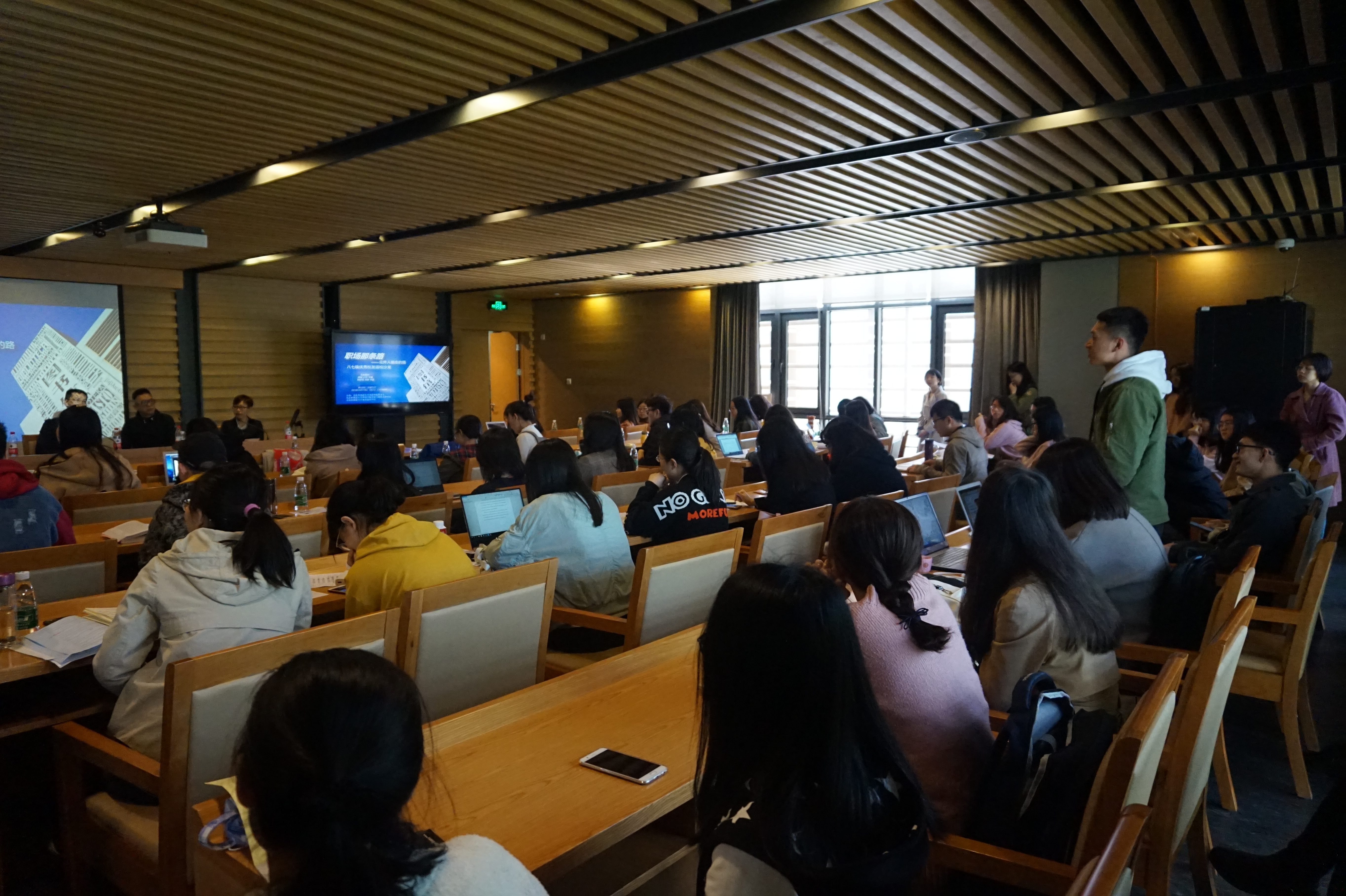 ——随后,校友们畅谈了这次回北外的感受,同时也表达了对北外学子的真诚祝愿。他们依次分享了各自的职场经历和心得,并告诉同学们走出大学才是学习的第一步。在进入职场时,首先要面临的是选择。而他们在选择职业时都曾摇摆过。对北外学生来说,语言专业是基础,是职场的敲门砖。做职业选择的时候首先要审视自己,明白自己的长处和短处,明白自己的性格特点和兴趣爱好,能否抗压。刘铮校友就给我们分享了她的趣事。因为喜欢打桥牌并且参加过此类比赛,刘铮校友对数字变得尤为敏感,并将此能力运用在了工作中。此外,在职场上更看重个人的综合能力和素质。学校里学到的知识会被遗忘但能力是陪伴终生的。在职场上,学习能力、沟通能力以及解决问题的能力都是很重要的因素。