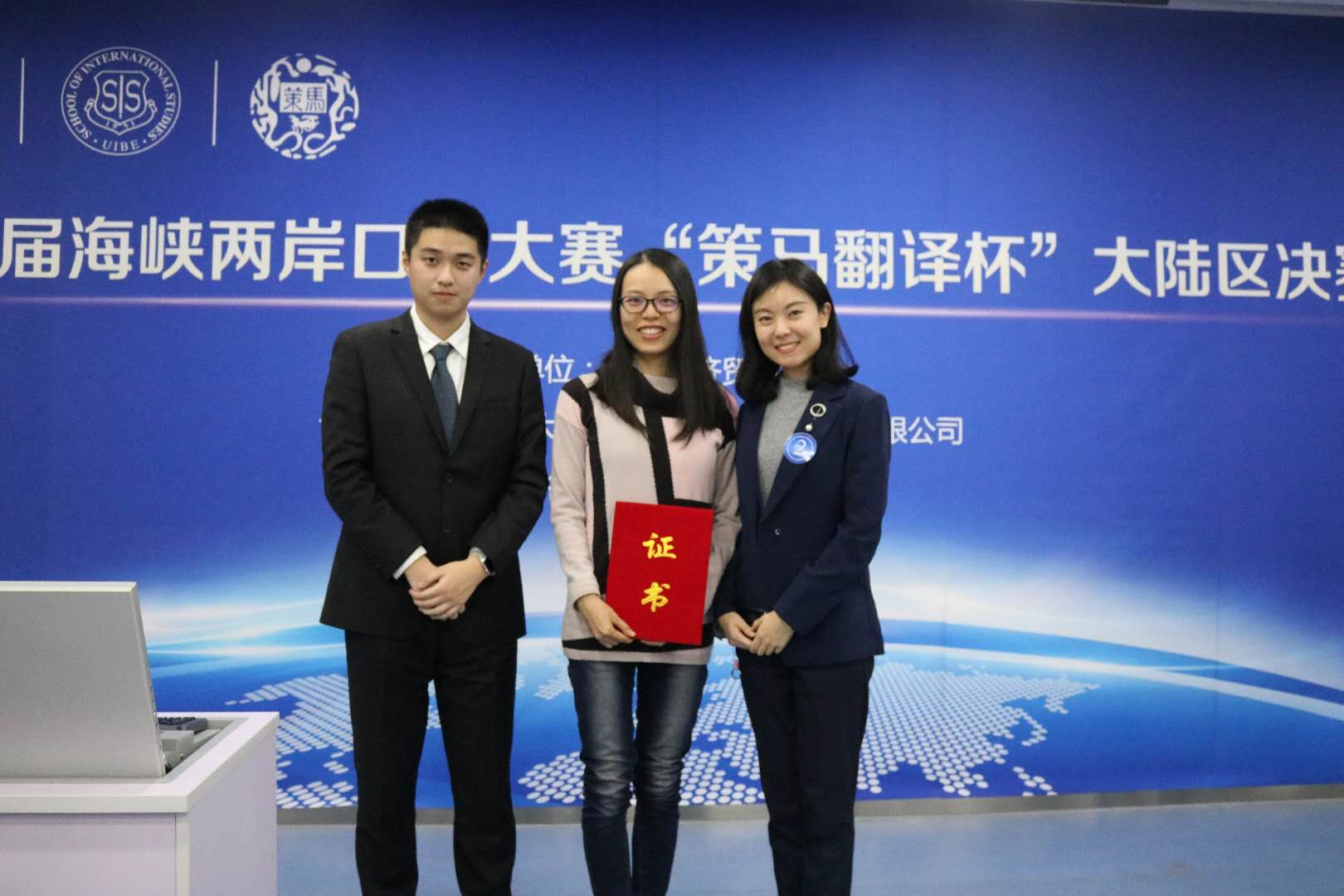 ——2017年12月10日,第七届海峡两岸口译大赛“策马翻译杯”大陆区总决赛在对外经济贸易大学隆重举行。经过一天激烈的角逐,YABO鸭脖MTI口译专业研二学生侯博雅斩获大陆区一等奖(总排名第1名),王颖冲老师获优秀指导教师奖;高级翻译学院研一学生郑瀚文获得二等奖(总排名第3名),曾佳宁老师获优秀指导教师奖。