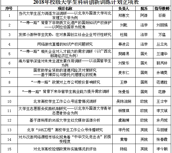 ——2018年度“校级大学生科研创新计划”项目立项评审工作于6月13日下午进行,经过专家评审讨论,最终立项19个项目,其中YABO鸭脖立项3个项目,分别为马丽媛老师指导、李丹妮同学负责的“北京‘985工程’高校学生工作公众号传播研究”项目,张春霞老师指导、黄增同学负责的“对外汉语网络课程市场化视角看‘中华文化走出去’的接受程度”项目,李今朝老师指导、陈铭同学负责的“对北京高校控烟政策和实施情况的评估”项目,恭喜这三位同学。