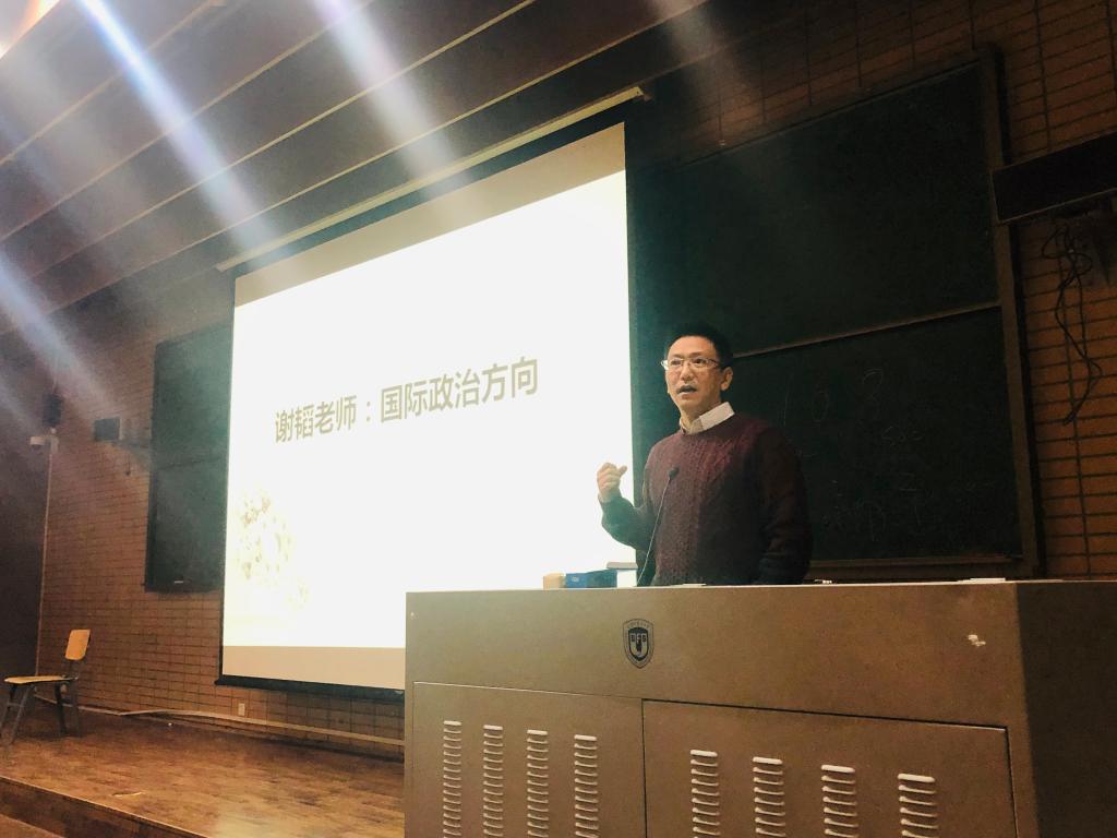 最后上台作介绍的是来自于国际政治与经济方向的谢韬老师,他在台上不乏风趣地侃侃而谈,向新生们简要介绍了本专业方向的学习内容与安排,并结合身边的实例向新生们阐释了选择本专业方向的理由,使新生们对于这一从未涉及的专业方向产生了浓厚的兴趣。本次会议过程轻松而有序,穿插其中的问答环节也给了新生们一个更具针对性地解惑的机会,令全体参与新生们受益匪浅。
