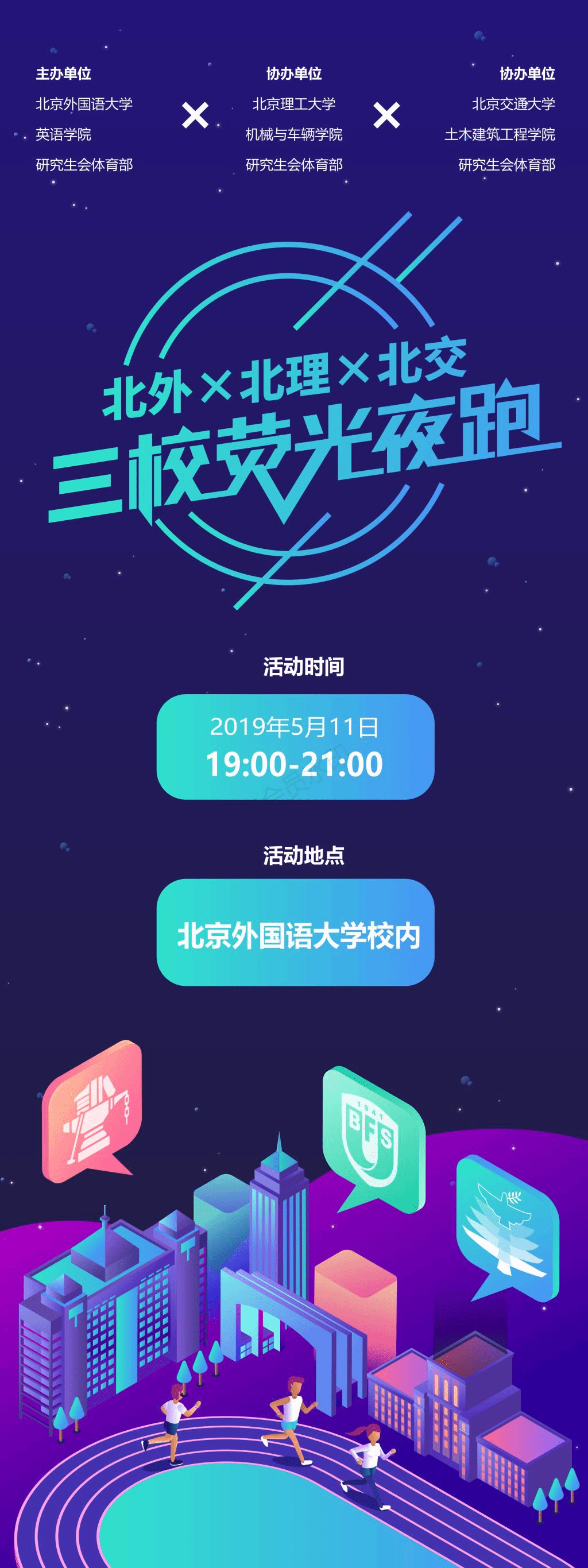 首届“北外·北理·北交三校荧光夜跑”成功举办
