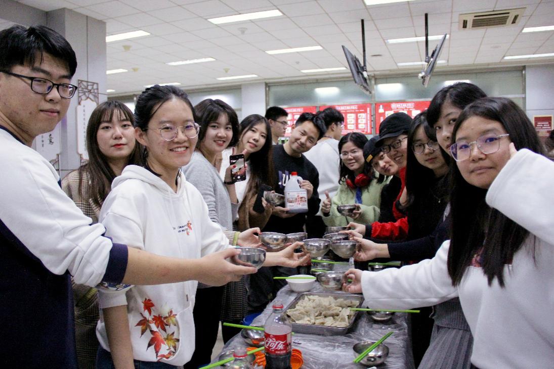 在满室浮动的饺子香中,第十七届英院包饺子大赛也走向了尾声。冬至,寓意年终有归宿。而此夜飘香的饺子,更是承载了师生们深厚的情谊,以及对英院、对北外的亲切感与归属感,可谓“今宵‘饺饺’月”,浓浓师生情!