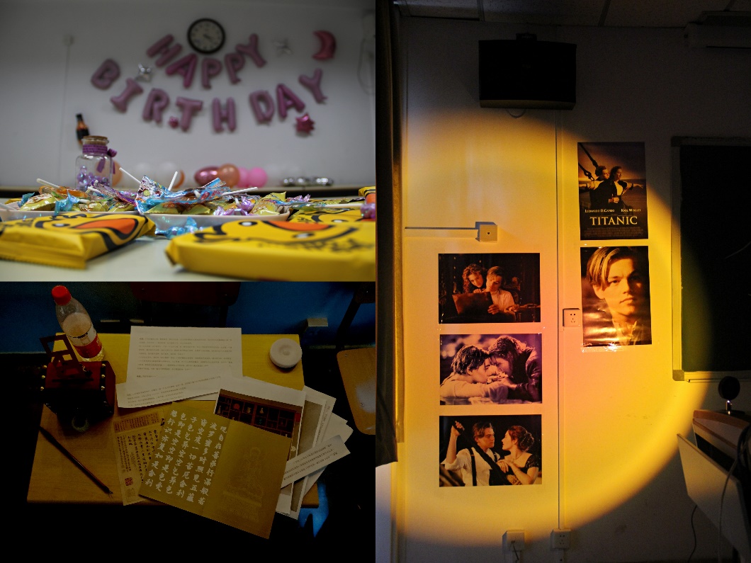 上午十点,“密室逃脱”迎来了第一批体验参与者。密室分为“庄生晓梦”、“鸡娃快跑”、“金风玉露”三个主题。教室摇身一变,成为新奇的游戏场景。“庄生晓梦”以四部奇幻电影为背景,构建起梦幻的世界;“金风玉露”选取四部经典爱情电影,以复古的海报装点房间,着力展现爱情的美好;“鸡娃快跑”依托教室环境构建密室,让同学们充分代入角色,身临其境。
