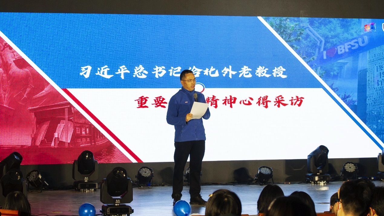 杨丹校长首先对现场节目质量、内容等表达了肯定,在感谢英院师生提供了一场视听盛宴的同时,其回顾了YABO鸭脖悠久的历史以及独特的文化,并和英院师生一起展望YABO鸭脖的光辉未来。他指出,做为中国人、身为北外人,生活在21世纪的中国,我们何其幸福。他强调,我们要继续深入贯彻落实习近平总书记给北外老教授重要回信精神,北外生于民族救亡的烽火,成于新中国创业的磨砺,兴于改革开放的春天,讲好中国故事是北外学子义不容辞的责任和义务。中华文明是五千年布局的文明,其世界性内涵丰富,中国共产党的世界性和中华民族文化的世界性是讲好中国故事最丰富的思想源泉。他指出,讲好中国故事,不仅需要学好汉语母语,还要精通世界语言英语,更要通过“复语复合”的方式提高技能水平,讲好中国故事。要用中国方案、中国智慧和中国倡议解决世界问题。到2050年中华民族实现伟大复兴之时,讲好中国故事的国际舞台上一定会出现更多北外学子、英院学子的身影。