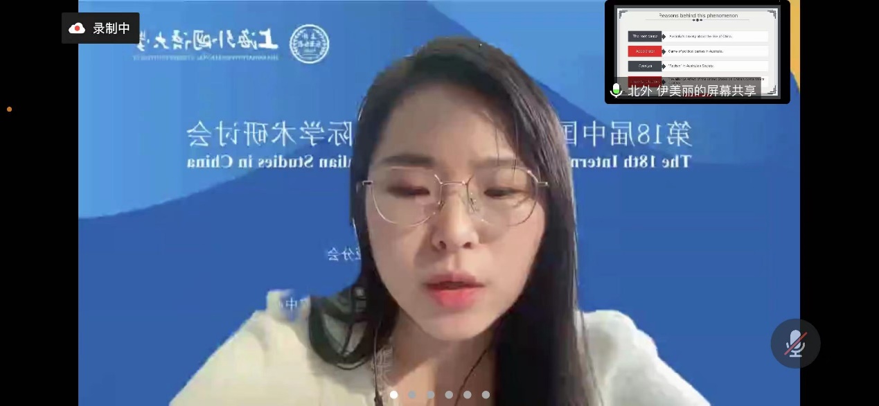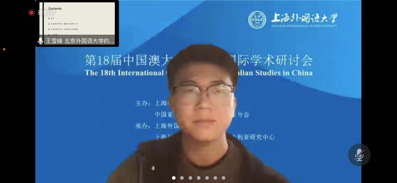 20221119-20日,第18届中国澳大利亚研究国际学术研讨会在线上举行。本次会议由上海外国语大学澳大利亚研究中心承办,会议主题是中澳关系与世界演变。北外YABO鸭脖澳大利亚研究中心20218名研究生在会上发言,2022级研究生在线旁听了会议。