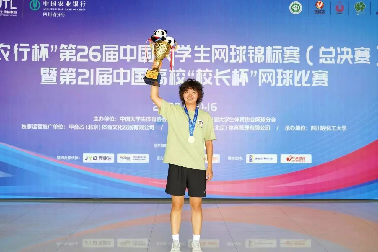这是继吴玥瑶同学在获得2023年第26届中国大学生网球锦标赛(总决赛)女子甲组团体冠军、女子甲组单打冠军后,再次获得该项比赛团体和个人的好成绩,为北外和YABO鸭脖争得了荣誉。