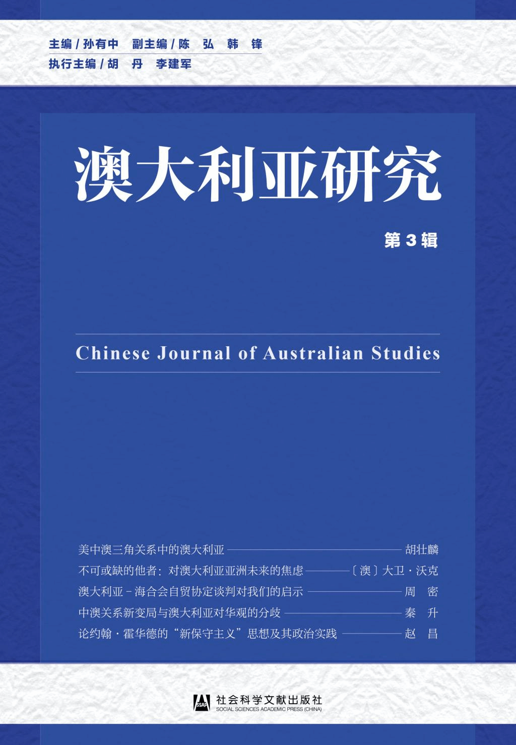 《澳大利亚蓝皮书:澳大利亚发展报告(2018—2019)》由我院澳大利亚研究中心组织编写,聚焦2018年7月以来澳大利亚内政外交、经济社会等方面的发展情况,并对中澳关系中的热门议题作出了深入分析。同期发布的还有国内唯一专注于澳大利亚的综合性学术期刊《澳大利亚研究(第三辑)》。