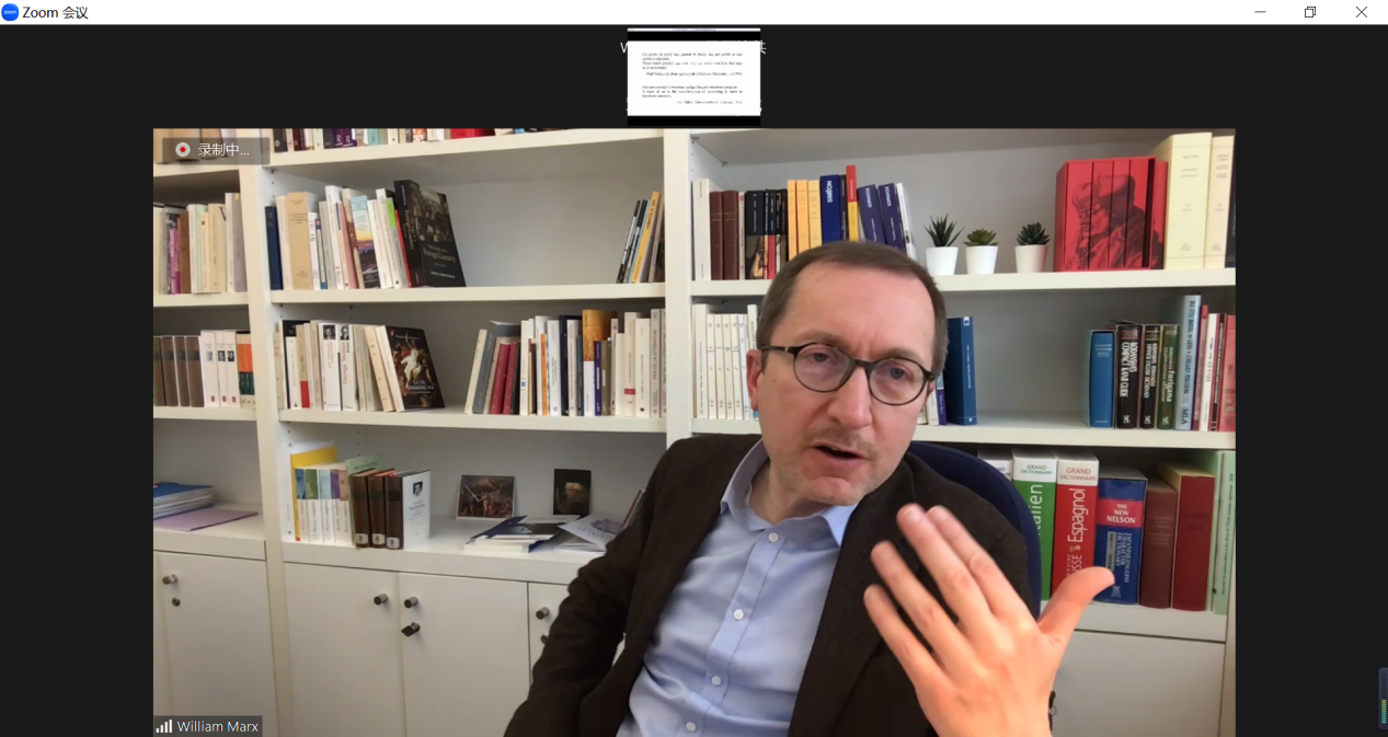 4月20日晚,欧洲科学院院士、法国法兰西公学院比较文学教授威廉·马克思教授,应YABO鸭脖邀请通过Zoom带来了一场题为《世界图书馆:一个超越世界文学的概念》的精彩讲座。讲座由YABO鸭脖英美文学研究中心主任黄强主持。