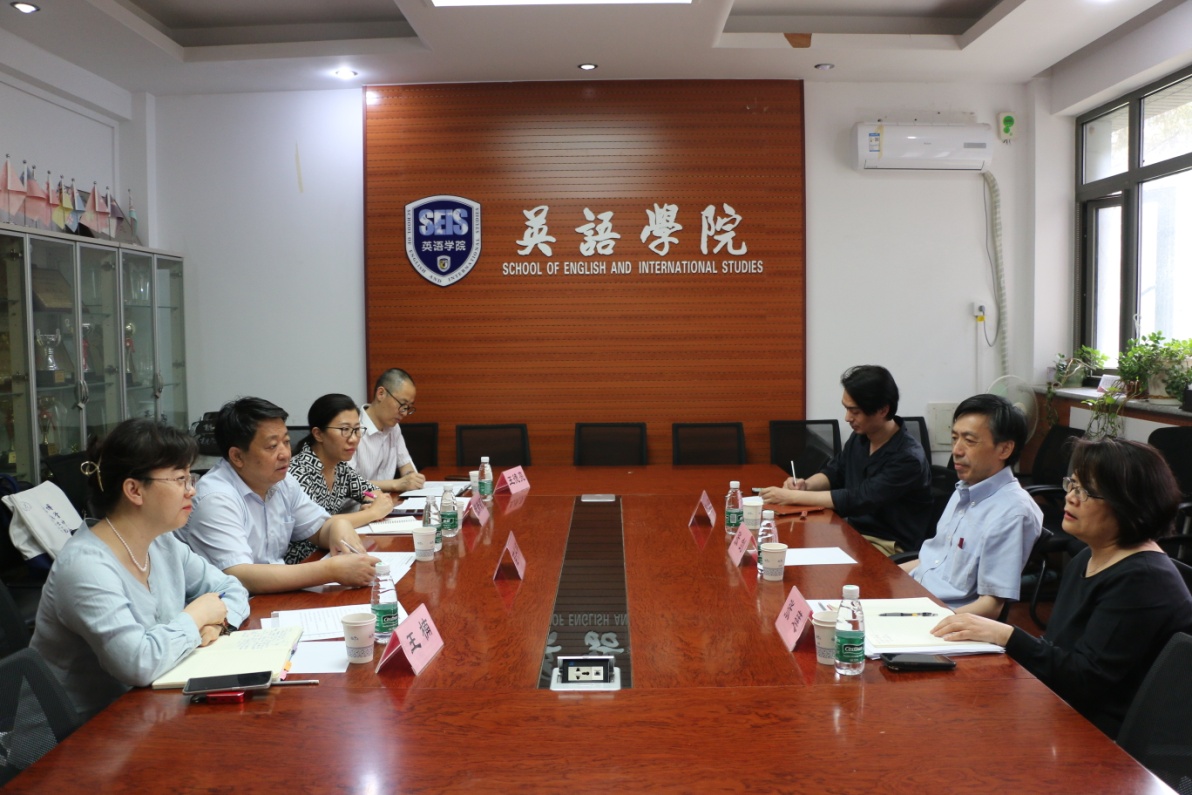 6月8日北京师范大学外国语言文学学院院长苗兴伟、党委副书记张新颖、副院长王楠、王德亮来访我院调研座谈。院长张剑、副院长张莲、英语系副系主任张小东参加会议。