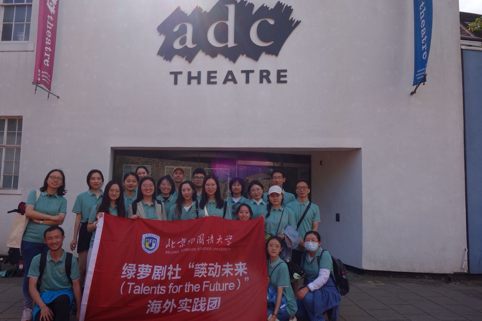 实践团抵达剑桥市当天即考察了剑桥大学著名喜剧剧社脚灯社(Footlights)的活动基地adc剧院。该剧院位于剑桥市帕克街,建于1855年,是英国最古老的大学剧场,既是剑桥大学的一个系,也是该校的戏剧中心,几乎完全由学生独立经营,罕有教师参与其事务管理。