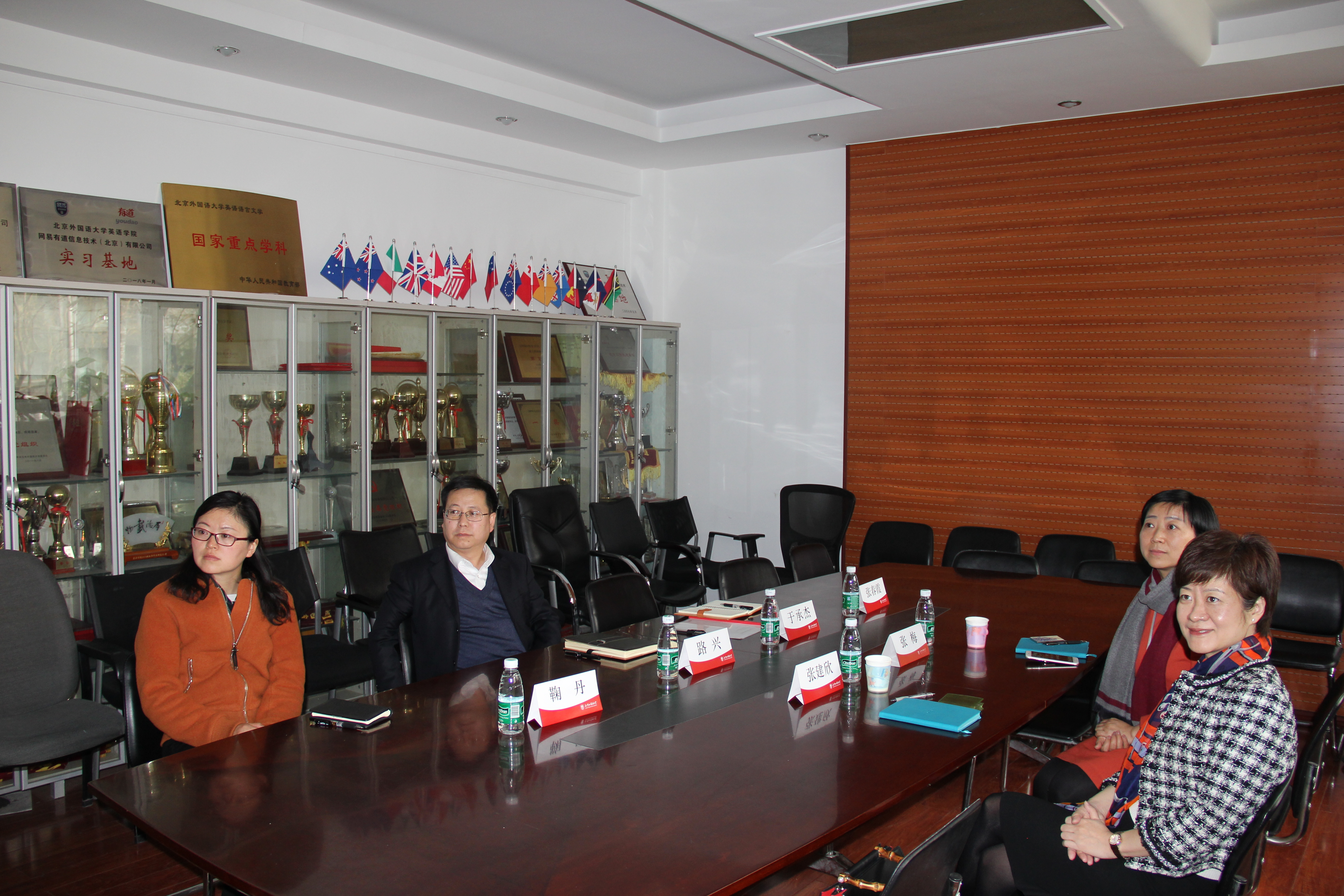 ——座谈会上,路兴首先代表学院对张建欣总裁一行表示欢迎,对道合公司提供的实习机会表示感谢。在观看学院宣传片的基础上,路兴重点介绍了学院近几年在促进学生全面发展方面的不断探索和创新:建设学业与职业支持中心、语音辅导中心、写作辅导中心,帮助部分学生提升英语语言技能和自主学习能力;搭建英文戏剧社(绿萝)、英文辩论队、口译俱乐部、英文演讲俱乐部等平台,为部分学生脱颖而出创造条件,以及与校外企事业单位签订实践实习基地等情况。