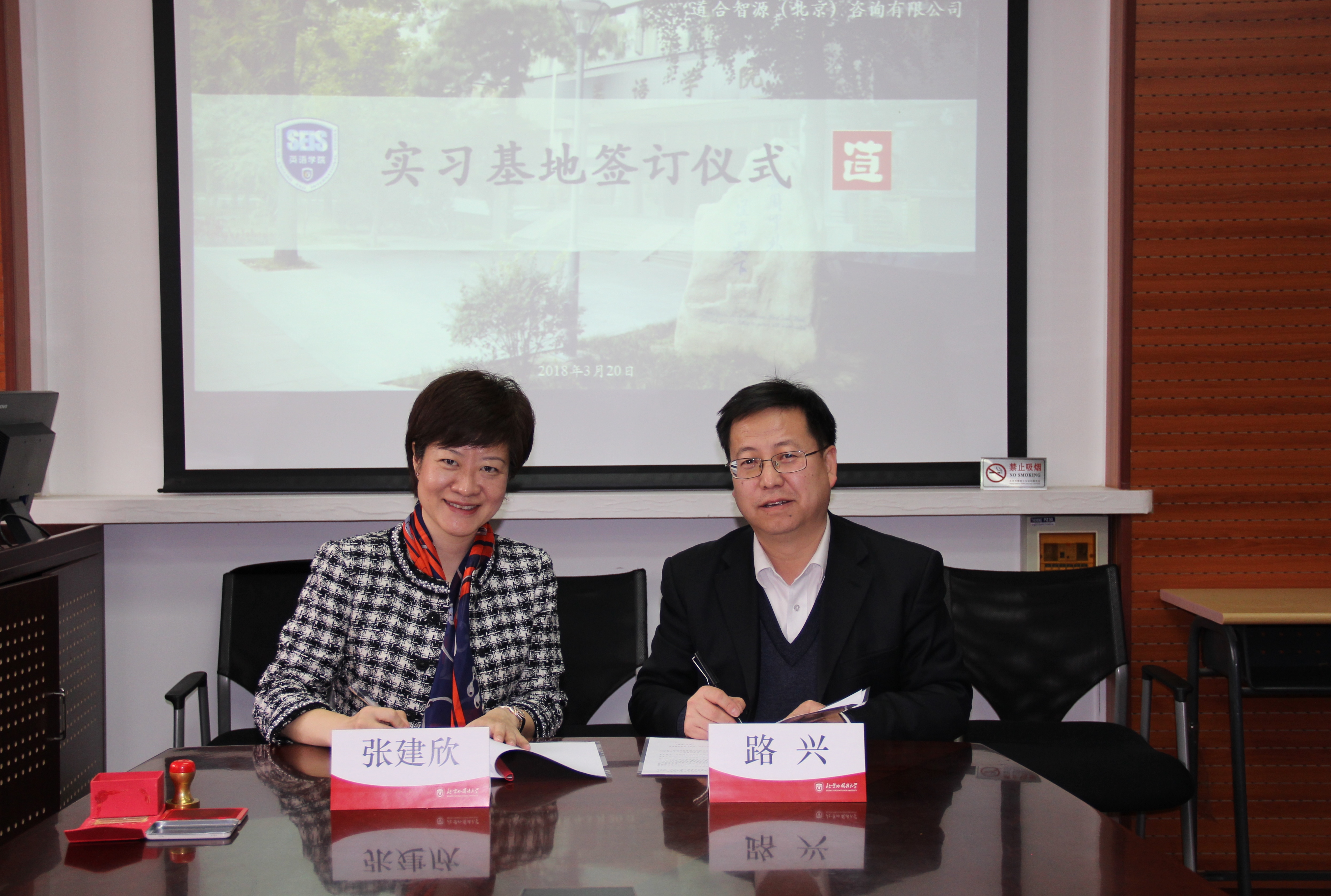 ——3月20日下午,道合智源(北京)咨询有限公司(以下简称“道合”公司)总裁张建欣、高级顾问张梅来我院座谈并签署实习基地协议。党总支书记路兴,辅导员鞠丹、于承杰参加。