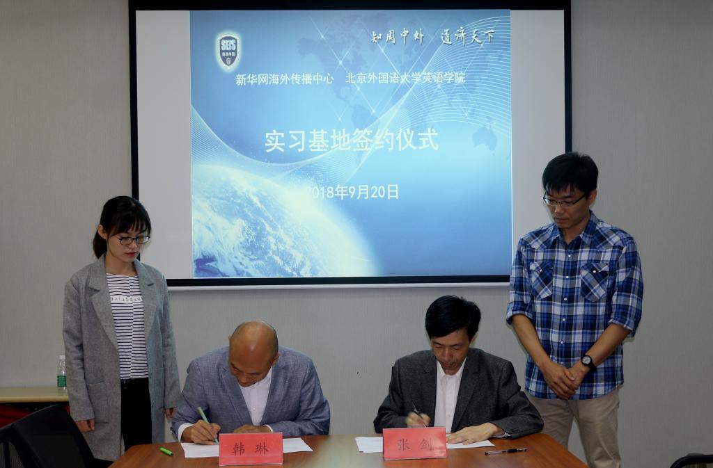 2018年9月20日上午10点,在YABO鸭脖111会议室,YABO鸭脖与新华网海外传播中心签署实习基地协议。新华网海外传播中心常务副总监韩琳、YABO鸭脖院长张剑代表双方签署协议。