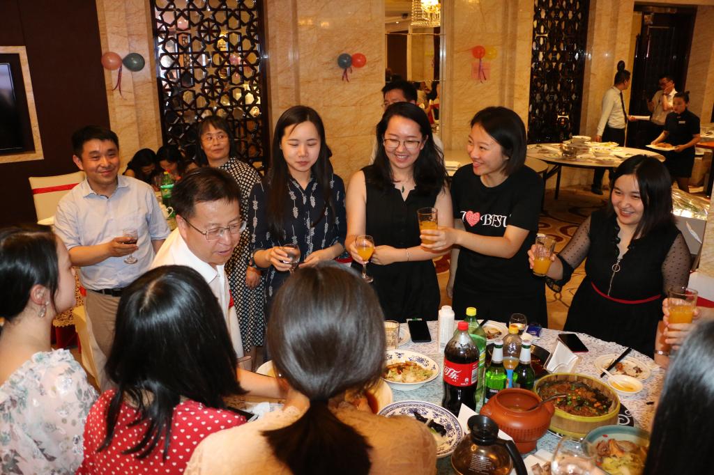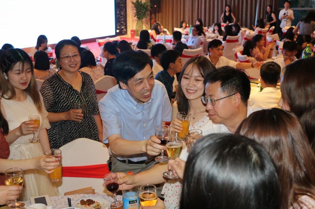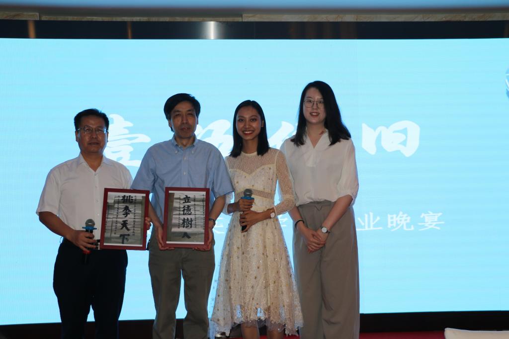 626日、27日晚,学生工作办公室精心组织了研究生、本科生毕业晚宴,院长张剑、党总支书记路兴、副院长王展鹏、孔子学院院长金利民、陈亚平、林岩、宋云峰、闫循华、孙三军、谢登攀、王元陆、王颖冲、张春霞等老师参加了毕业晚宴。师生们盛装出席,欢聚一堂,毕业生们表演了精彩的节目,向学院赠送了精美的礼物。本科生胡笑然代表全体本科生赠送了她书写的立德树人桃李天下的书法作品。