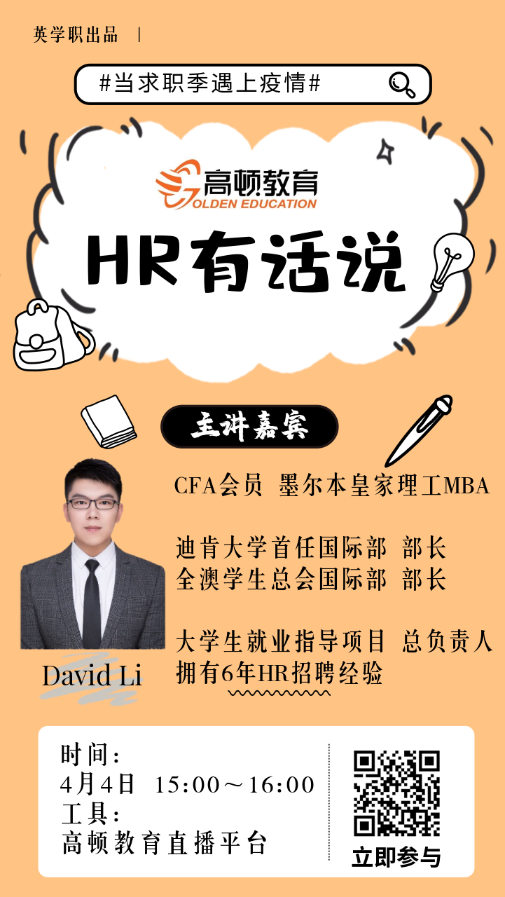 4月4日,YABO鸭脖学业与职业支持中心歆业线下小组举办了第一次“HR有话说”特别栏目。我们荣幸地邀请到高顿教育大学生就业指导项目总负责人David Li(厉亚鹏),厉老师拥有6年的行业招聘经验,履历和经验都相当丰富。