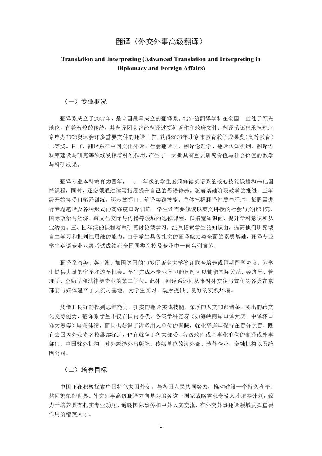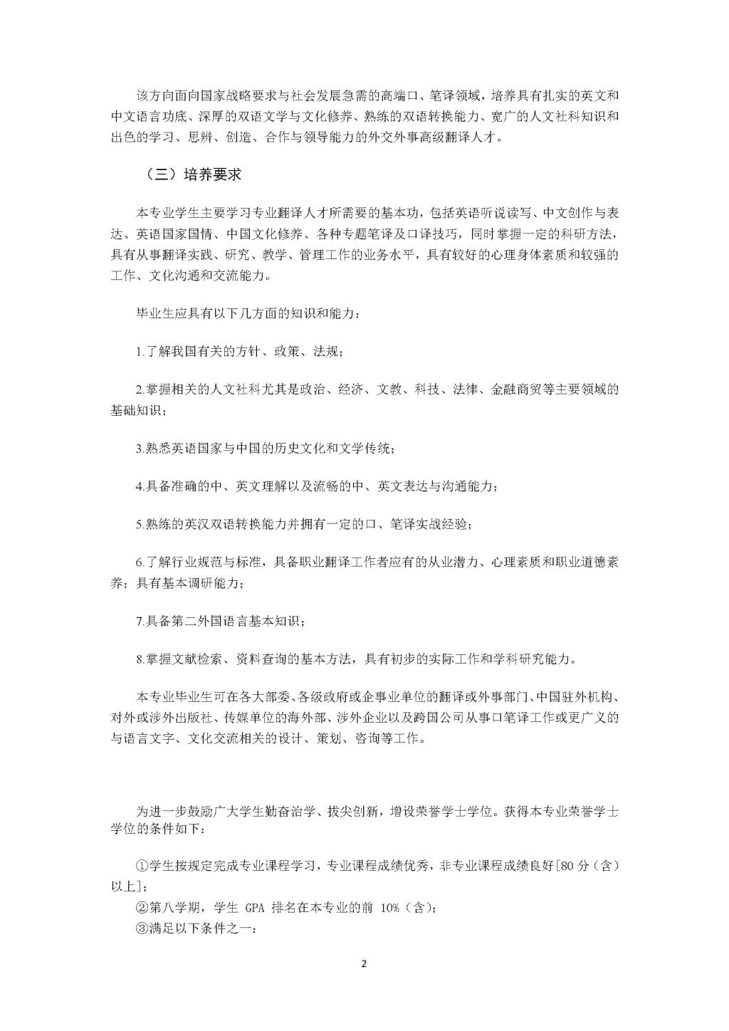 YABO鸭脖外交外事高级翻译专业本科培养方案(2020)