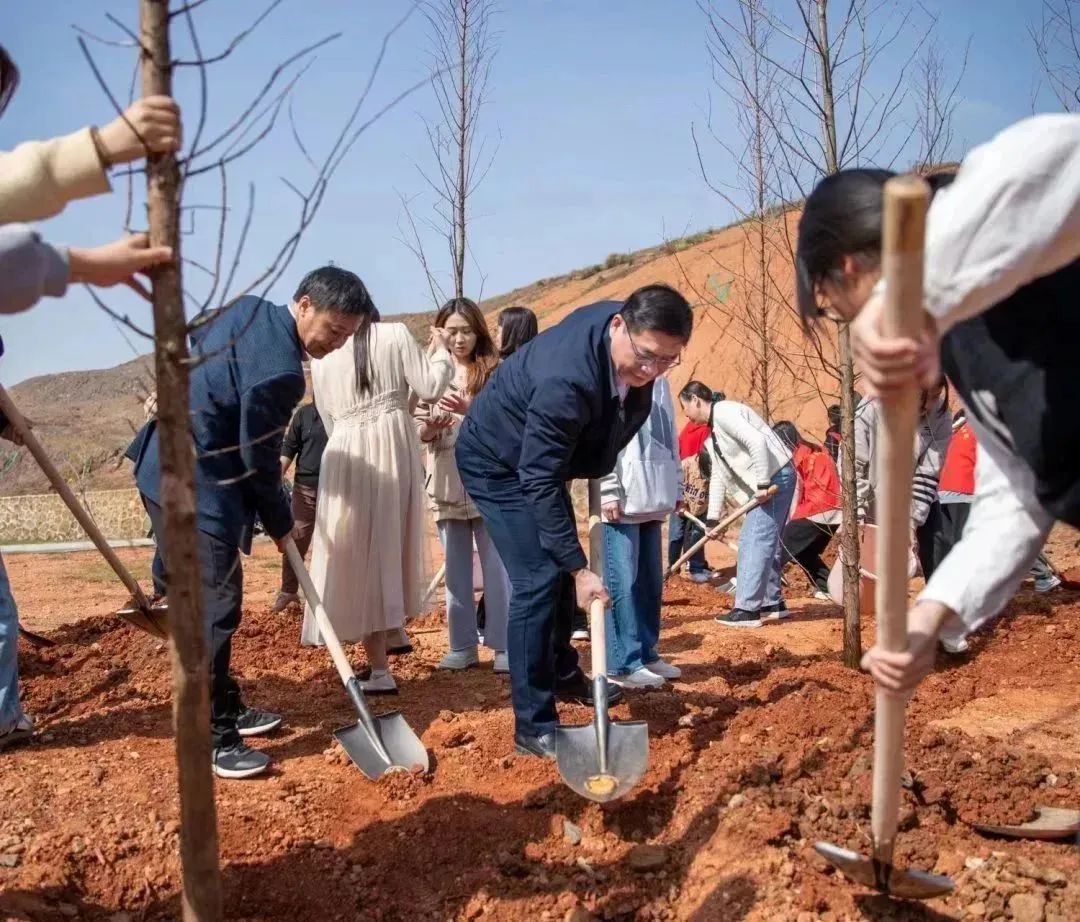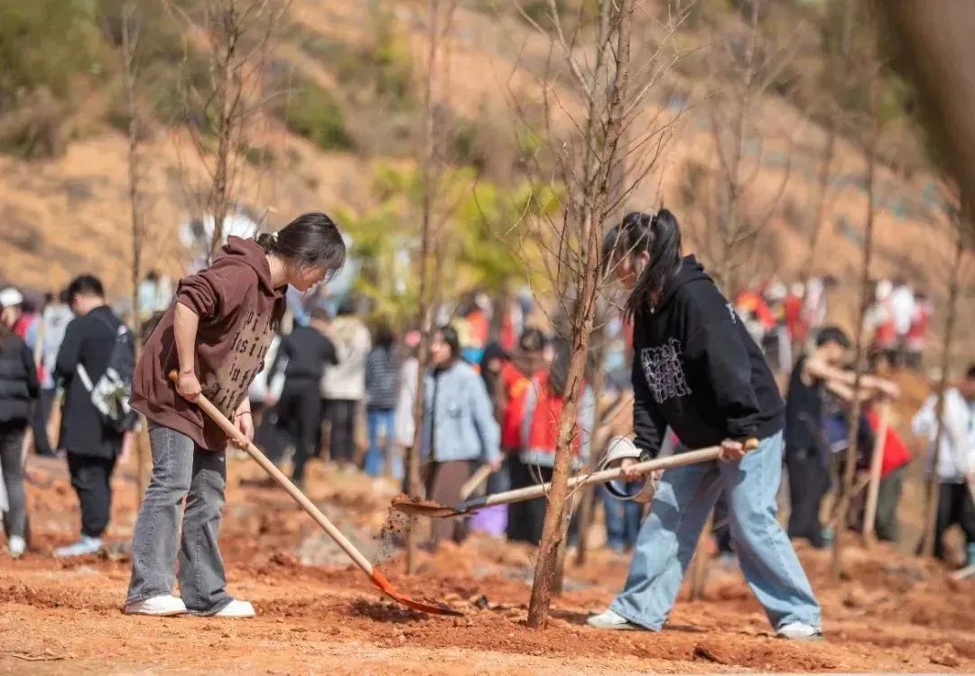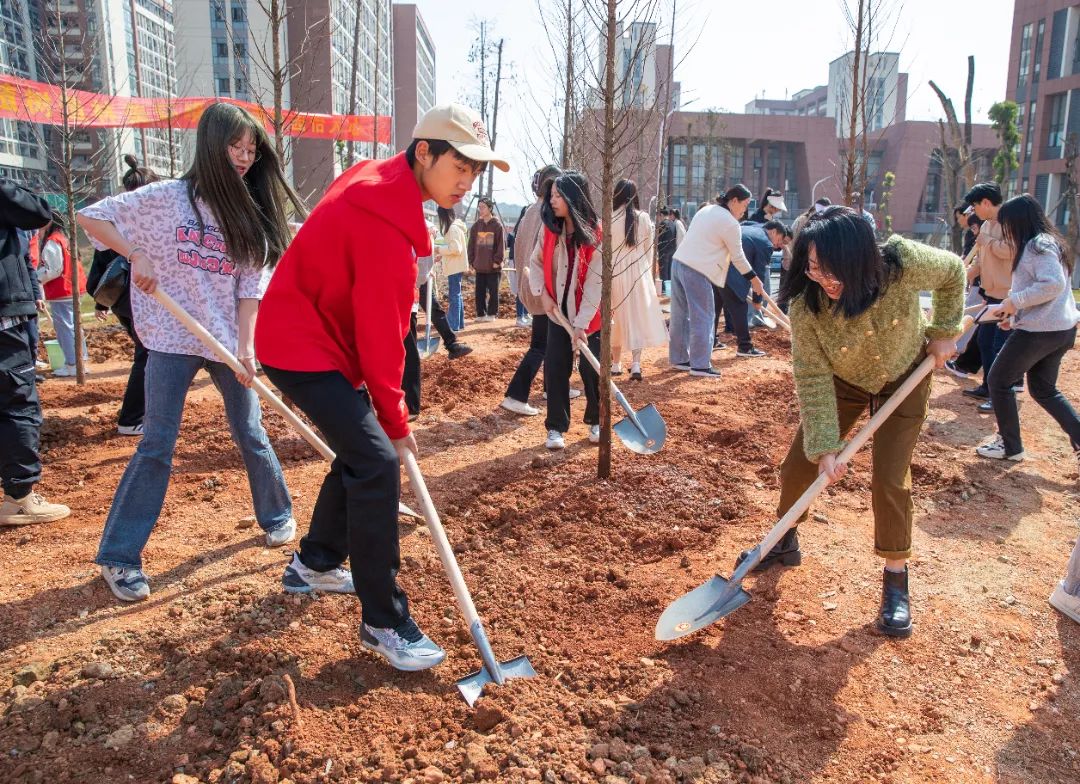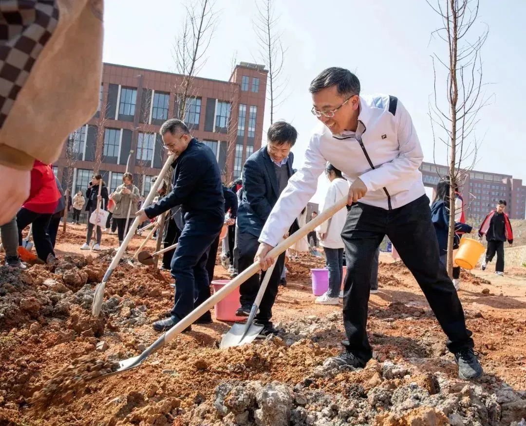 和风吹拂三月暖,植树添绿正当时。为积极创建文明校园,培养师生环保意识、生态意识、劳动意识,3月13日上午,开云官网在新校区东区月湖边开展植树活动。校党委书记任军,党委副书记、校长邱军等党政班子成员、相关部门负责人、150余名学生代表及丹田物业部分工作人员参与此次活动。