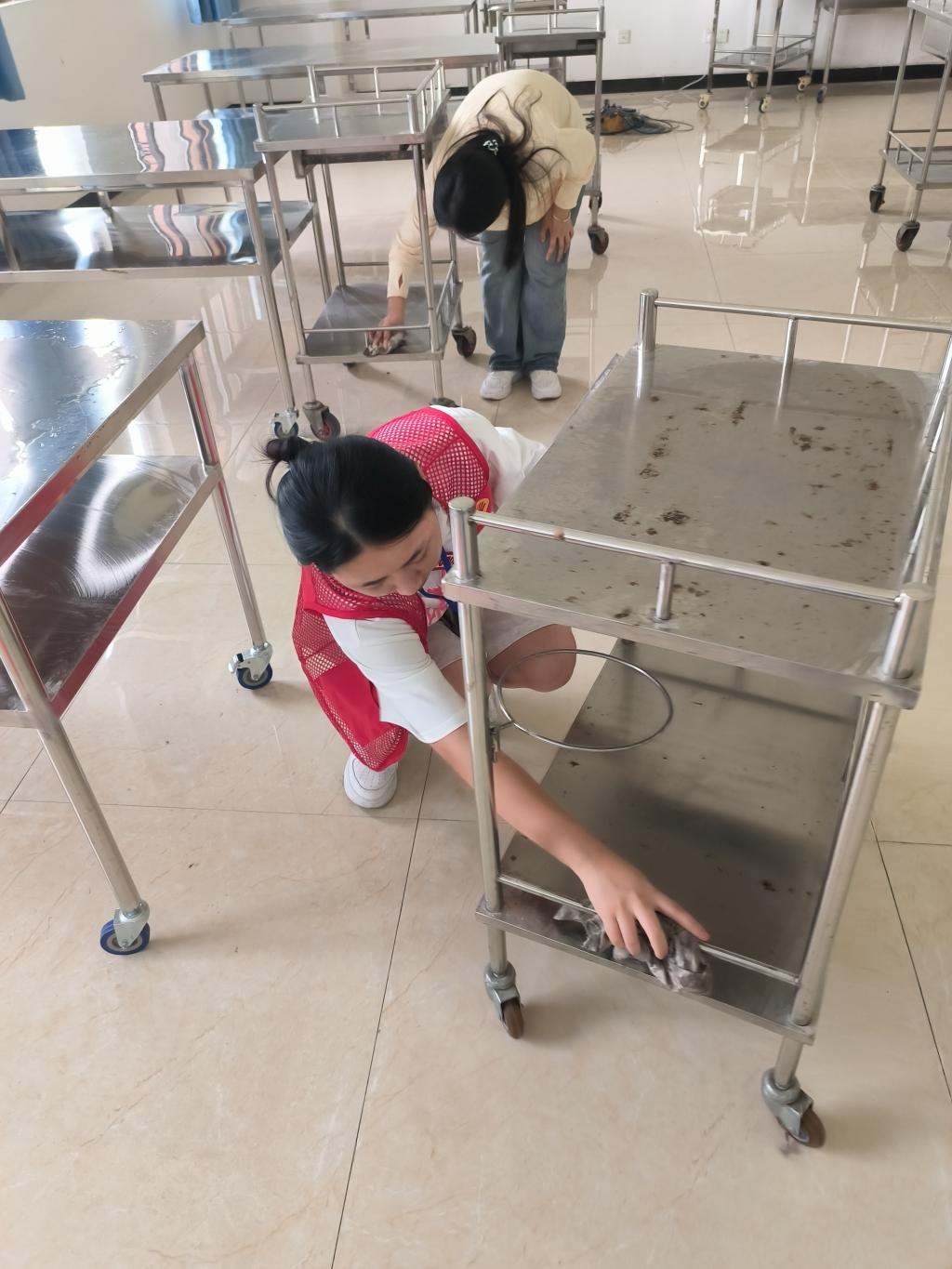 活动中,全体师生分工明确,各司其职:有人负责扫地;有人擦桌子;有人整理物品。他们认真细致地完成每一项任务,一丝不苟地清理着每一件物品,打扫每一个角落。在大家的团结协作下,经过一个暑期、早已灰蒙蒙的实训室,变得干净整洁。学生们用自己的行动诠释劳动的重要性和价值,体验到劳动的乐趣,体现出团队合作的精神。