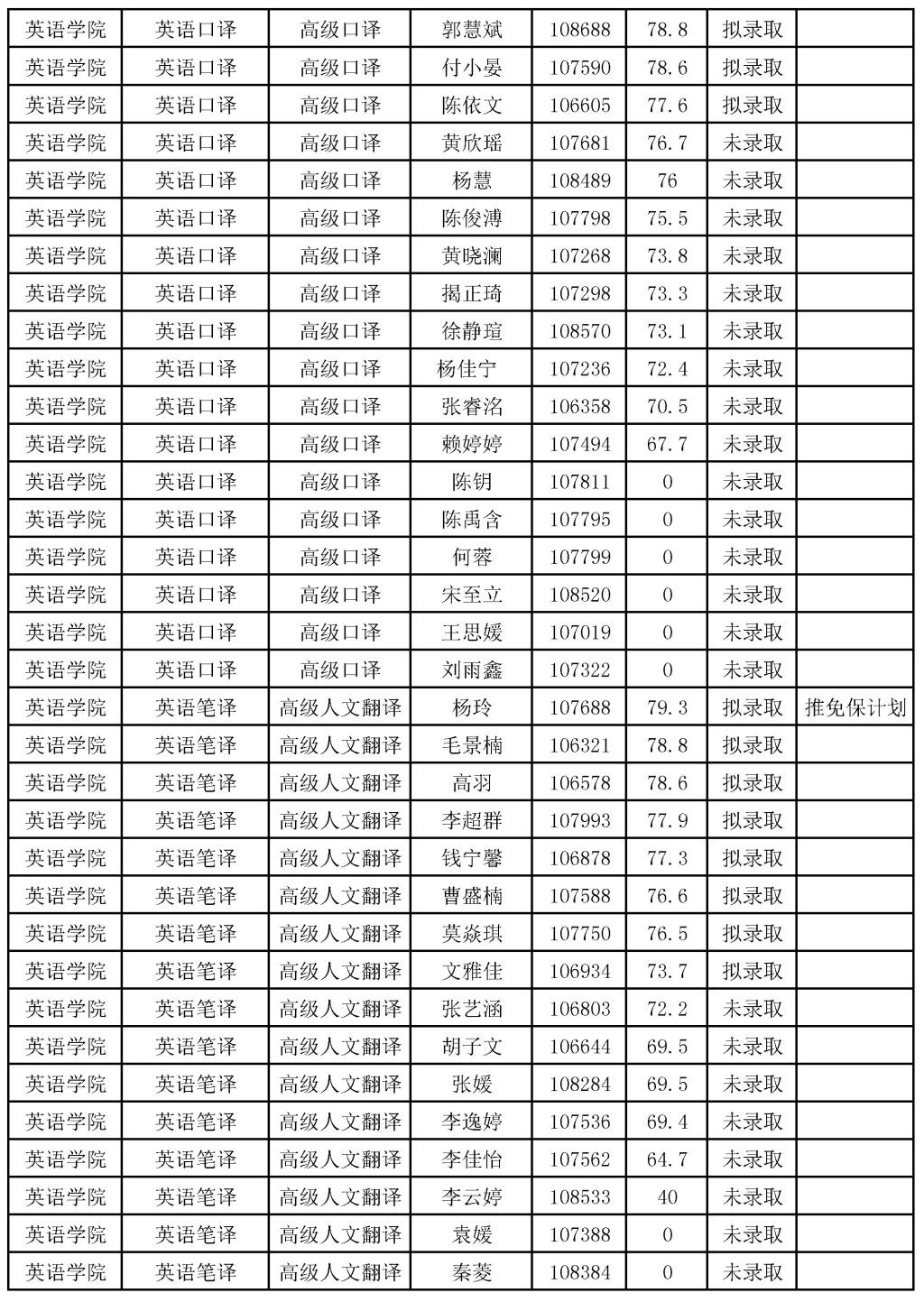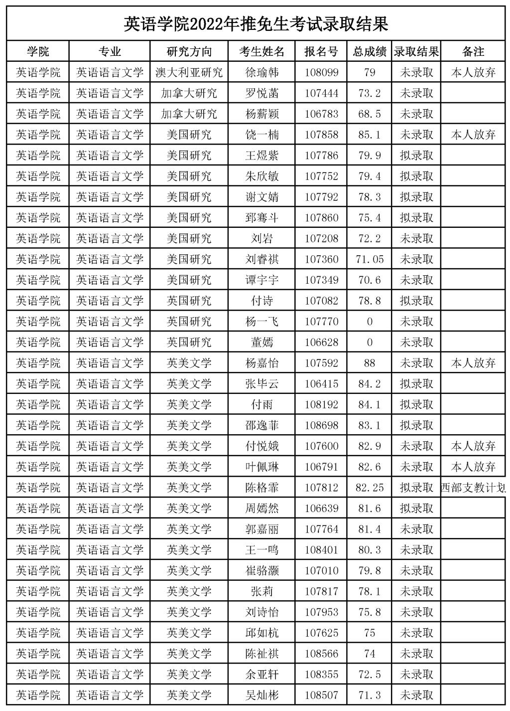YABO鸭脖2022年推免生考试录取结果公示