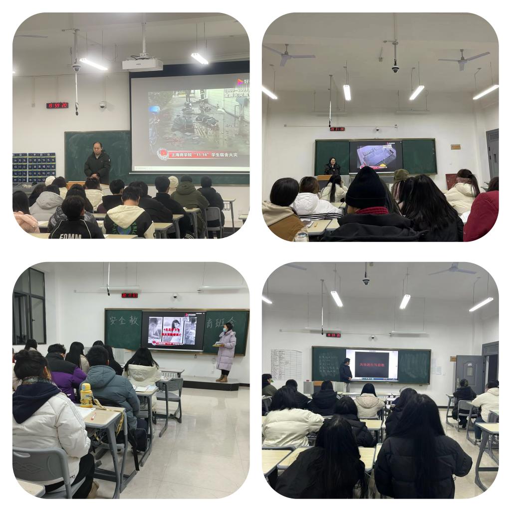 班主任结合学生宿舍情况逐一说明存在的安全隐患,重点讲解宿舍防火的重要性,并带领全班学生共看《上海商学院火灾》案例以及《火灾逃生与自救》教育视频。鲜明的案例,细致的分析,再次敲响宿舍安全预防警钟,同学们深刻感受到宿舍安全事关你我,安全问题需谨记于心。