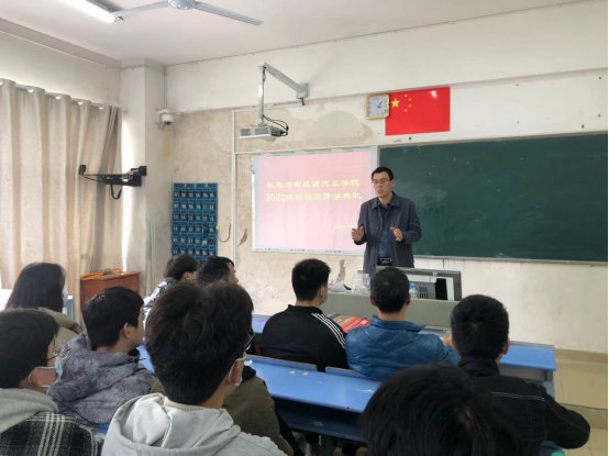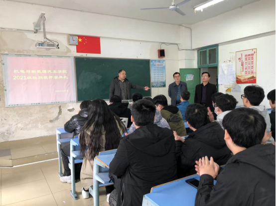 首先,周勤老师介绍了开学典礼到场的领导及老师,随后由吴东平副院长致辞,他代表学院全体师生对2021级新生的到来表示热烈欢迎,详细介绍了机电与新能源汽车学院发展历程及愿景,介绍了学校毕业生就业状况,引导学生以社会及企业对毕业生职业能力需求为导向,在大学着力培养职业能力及就业力塑造等。