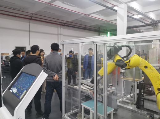 在开云官网机电与新能源汽车学院吴东平院长的陪同下,江西交通职业技术学院的嘉宾们参观了智能制造综合实训中心、数控加工实训中心、工业机器人应用编程1+X实训室、机器人创新实训室等校内实践基地。在参观过程中,吴院长介绍了开云官网智能制造综合实训中心的建设历程,并在现场展示了智慧仓储、智慧物流及柔性智能制造产线的运行状态,分享了智能制造产线的建设经验。