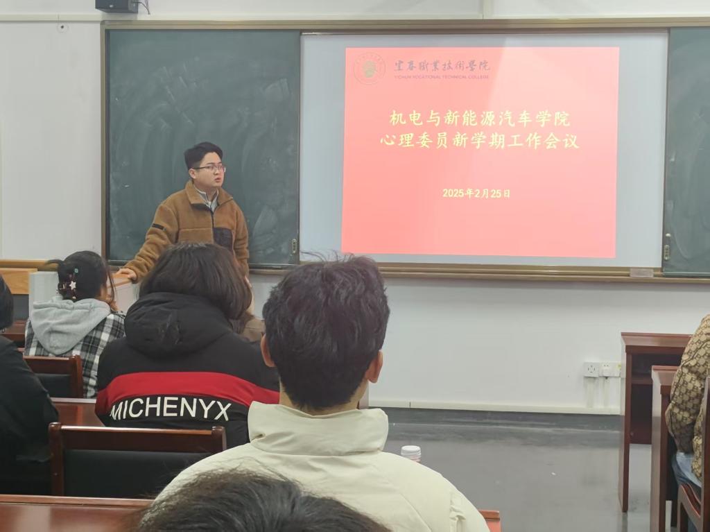 本站讯(机电与新能源汽车学院 欧阳健林 学生记者 孙宇)2月25日晚,机电与新能源汽车学院在新能源技术工程中心502室召开心理委员新学期工作会议。此次会议旨在总结上学期工作成果,部署新学期心理教育工作重点,进一步提升心理委员的工作能力,为全院学生提供更优质的心理服务。