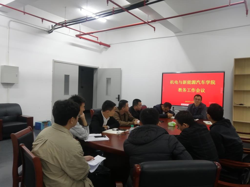 本站讯(机电与新能源汽车学院 易健)11月13日下午,机电与新能源汽车学院在新能源技术工程中心510会议室召开期中教务工作会议。会议由院长吴东平主持,教务人员、教研室主任及相关老师参加会议。