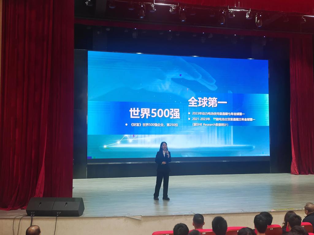 11月13日,新能源创新科技公司宁德时代走进机电与新能源汽车学院,在博达楼演艺厅开展了一场精彩的宣讲会。
