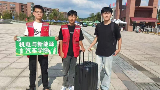 清晨,迎新工作已经全面展开。在校门口,学生会志愿者们身着统一的绿色马甲,手持欢迎牌,面带微笑,为每一位机电新生及家长提供热情周到的指引服务。他们不仅指引新生前往报道地点,还主动帮助新生提放行李,确保新生能够轻松、便捷地完成注册流程。