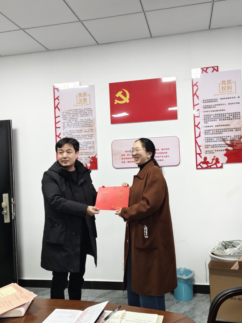 活动开始首先由文灏同志带领大家学习《习近平总书记主持中共中央政治局会议分析研究2025年经济工作研究部署党风廉政建设和反腐败工作会议精神》,其次由张晋晋同志带领大家学习《中国共产党普通高等学校基层组织工作条例》,开展讨论并发言。最后由支部书记周昊同志为党员张晋晋、宋海妍、吴旋等同志送上政治生日贺卡,他们纷纷表示今后要更加坚定理想信念,时刻牢记党的宗旨和使命,在工作岗位上充分发挥党员的先锋模范作用。