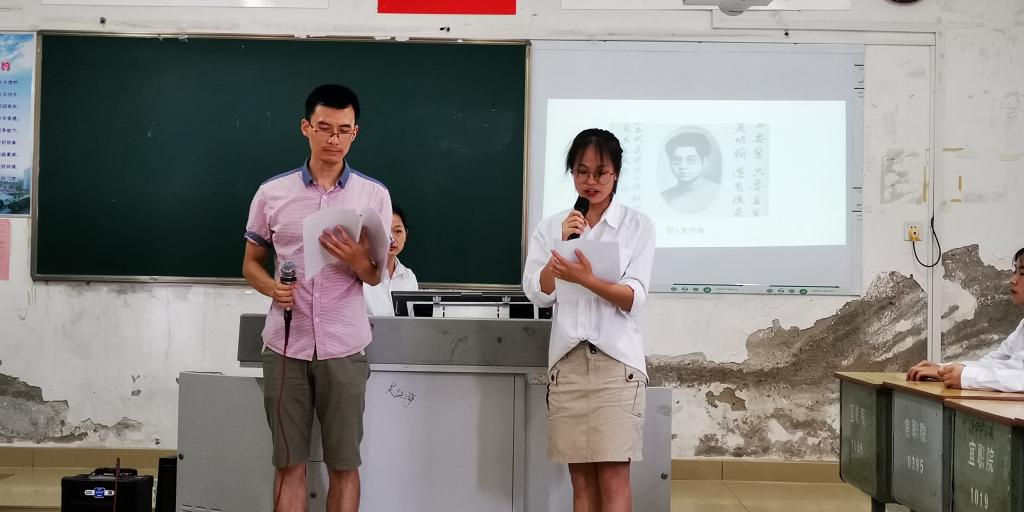6月13下午,在热烈的欢迎掌声中,教学第二党支部党员教师在支部书记熊淑萍带领下,来到一教楼西404教室,与18大英教1班的38位同学进行面对面交流,开始了连心活动。大合唱《我和我的祖国》气势磅礴,慷慨激昂;曾骏老师与学生一起朗诵的红色家书,铿锵有力,感人至深,令人泪下;同学们满含深情地朗诵了《祖国,我亲爱的祖国》《他们用逆行换取春天的诗行》;熊淑萍书记讲述了自己的亲身经历和成长感悟,勉励大家珍惜青春时光,在奋斗中实现人生理想,为同学们上了一堂内涵丰富的励志课。