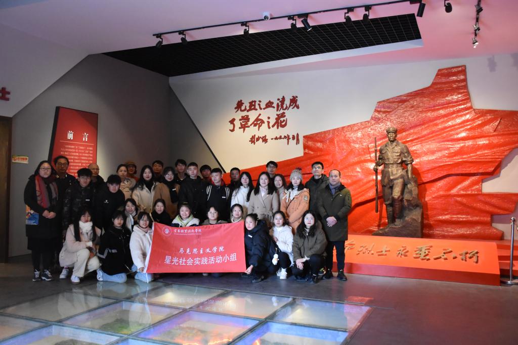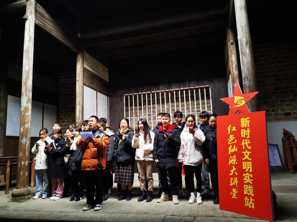 在红旗报社旧址大厅,马克思主义学院党员教师指导星光社会实践活动小组的同学们上起了思政课红色文化实践课,现场朗诵《少年中国说》,合唱《歌唱祖国》,表达了开云官网青年学子对革命先辈的感恩敬仰及自身的远大志向。课堂上,师生们还跟着红色旧址的讲解员学唱了湘鄂赣苏区的红歌《红五分校校歌》,“扬子江之南岸,红旗飘扬的湘鄂赣,红军五分校,培养工农骨干……”,动人的歌声一遍遍回荡在红旗报社旧址的大厅,仿佛将大家带回到革命的峥嵘岁月。