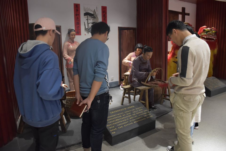 通过与馆内工作人员的交流,调研小组领略到了宜春各地的特产与技艺,如丰城冻米糖、袁州松花皮蛋、奉新土纸、上高道情、高安采茶戏等。当看到宜春版画、脱胎漆器、木雕根雕等实物陈列在展览柜中时,师生在惊叹于宜春丰富且精湛的传统技艺之余,也不禁为很多人不了解这些非物质文化遗产而感到惋惜,更深刻意识到弘扬优秀传统文化、传承非物质文化遗产的任重道远。