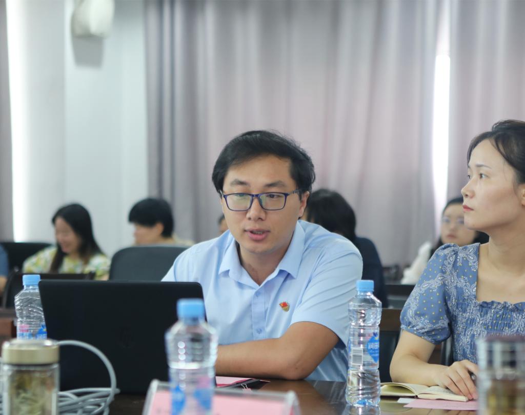 形势与政策教研室主任曾骏、思想道德与法治教研室主任胡金兰分别对“七一”重要讲话精神融入《形势与政策》与《思想道德与法治》课进行了教学说明,并提出了要求,明确要将“七一”重要讲话精神有机融入到教学当中,融入到每一章节当中,灵活运用,有机结合,形成育人合力。