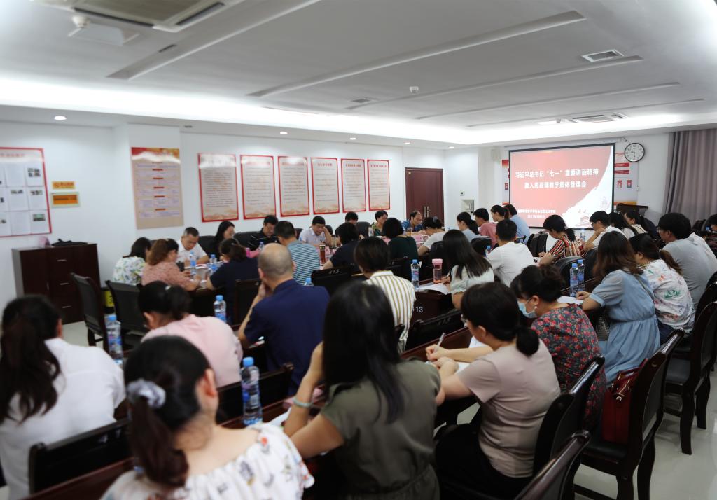 本站讯(马克思主义学院 卢凯)为持续推进党史学习教育走深走实,推动习近平总书记“七一”重要讲话精神进教材、进课堂、进头脑,确保新学期思政课教学工作切实有效地展开,9月8日上午9时30分,马克思主义学院在科技综合楼413室举行习近平总书记“七一”重要讲话精神融入思政课教学集体备课会,学校党政领导班子成员和全体思政课教师参会,会议由马克思主义学院院长彭慧洁主持。